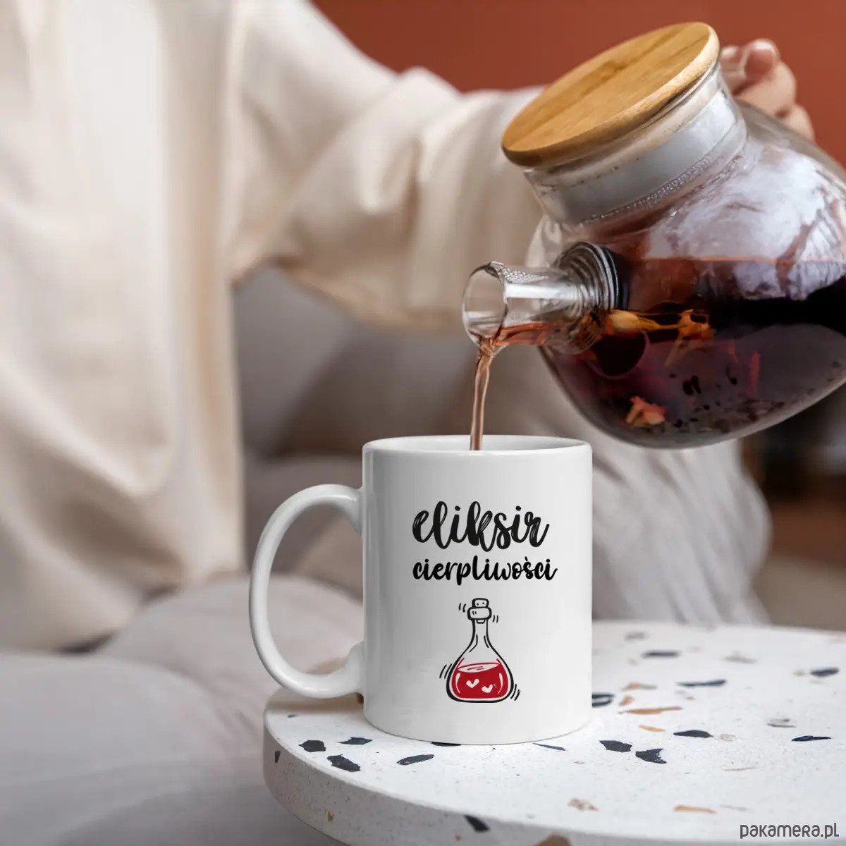 Personalizowany kubek ze śmiesznym nadrukiem eliksir cierpliwości to doskonały prezent dla każdego. Wystarczy, że wybierzesz kubek eliksir cierpliwości, który będzie Ci towarzyszył w trudnych momentach dnia. Taki kubek z pewnością pomoże Ci zachować spokój i wytrwałość, gdy sytuacja zaczyna się komplikować. A każda filiżanka herbaty czy kawy, którą wypijesz z personalizowanego kubka eliksiru cierpliwości, przypomni Ci, że możesz radzić sobie ze wszystkim, co życie przynosi na Twoją drogę.
