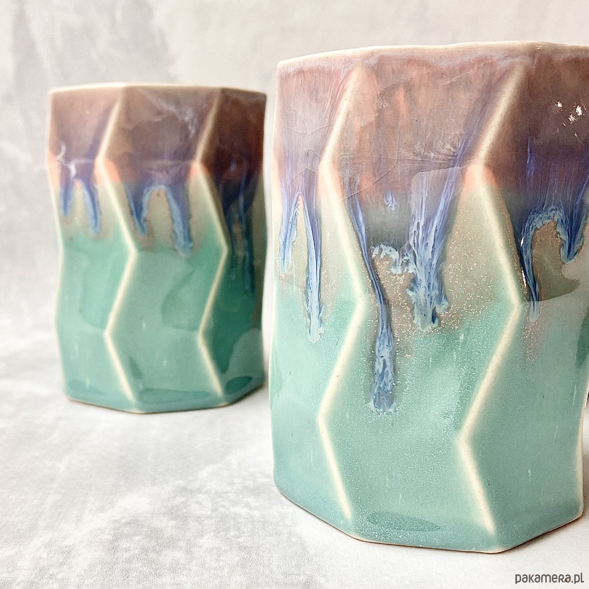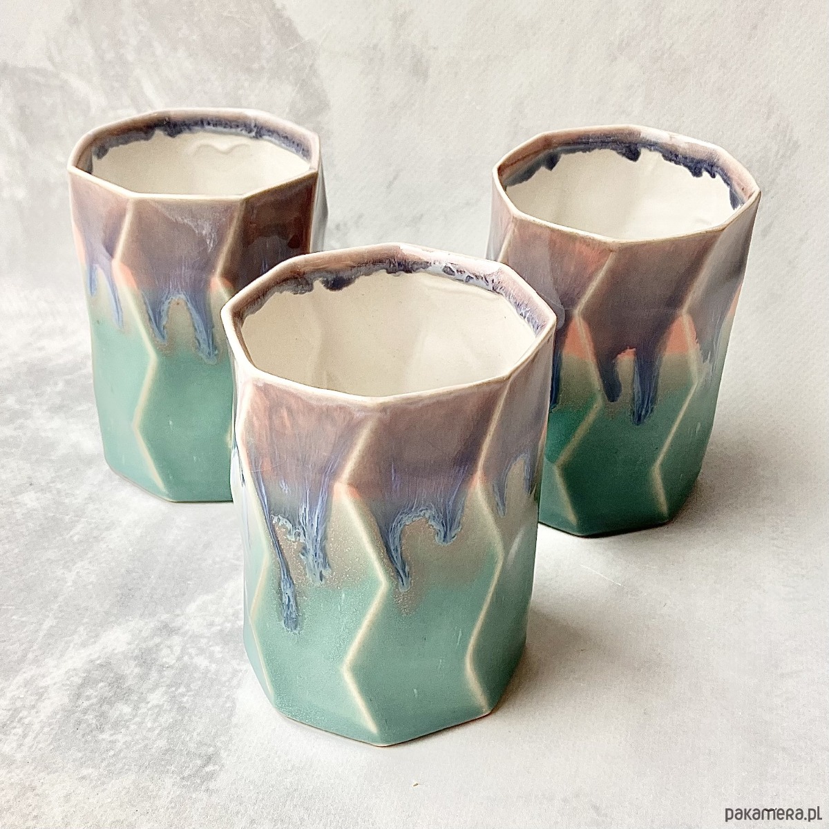 Każdy kubek może różnić się delikatnie we wzorach i kolorach, gdyż produkty wyrabiam oraz szkliwię ręcznie. To w ceramice kocham najmocniej – wszystko ma swoją oryginalność i niepowtarzalność.