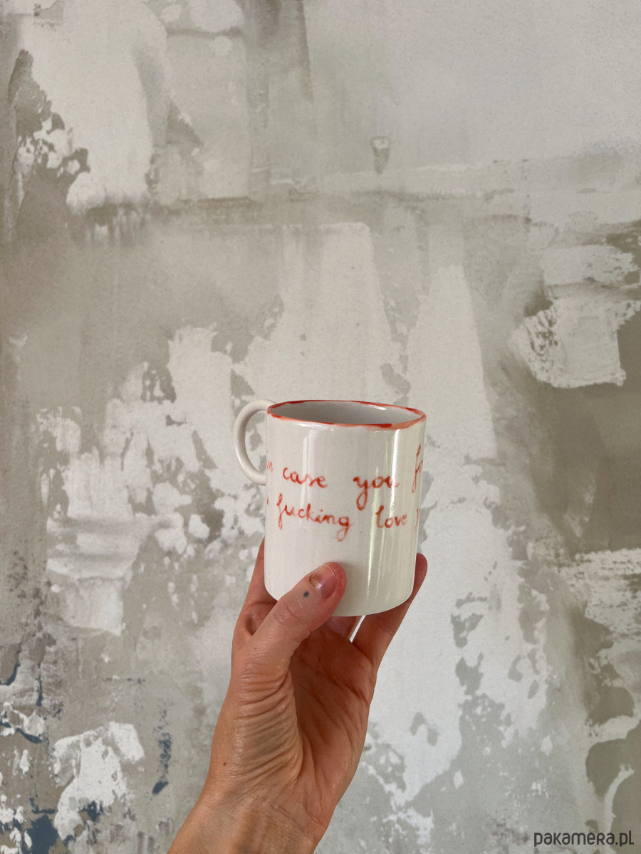 Porcelanowy kubek z uchem z napisem In case you forgot I fucking love you o pojemności 300 ml.