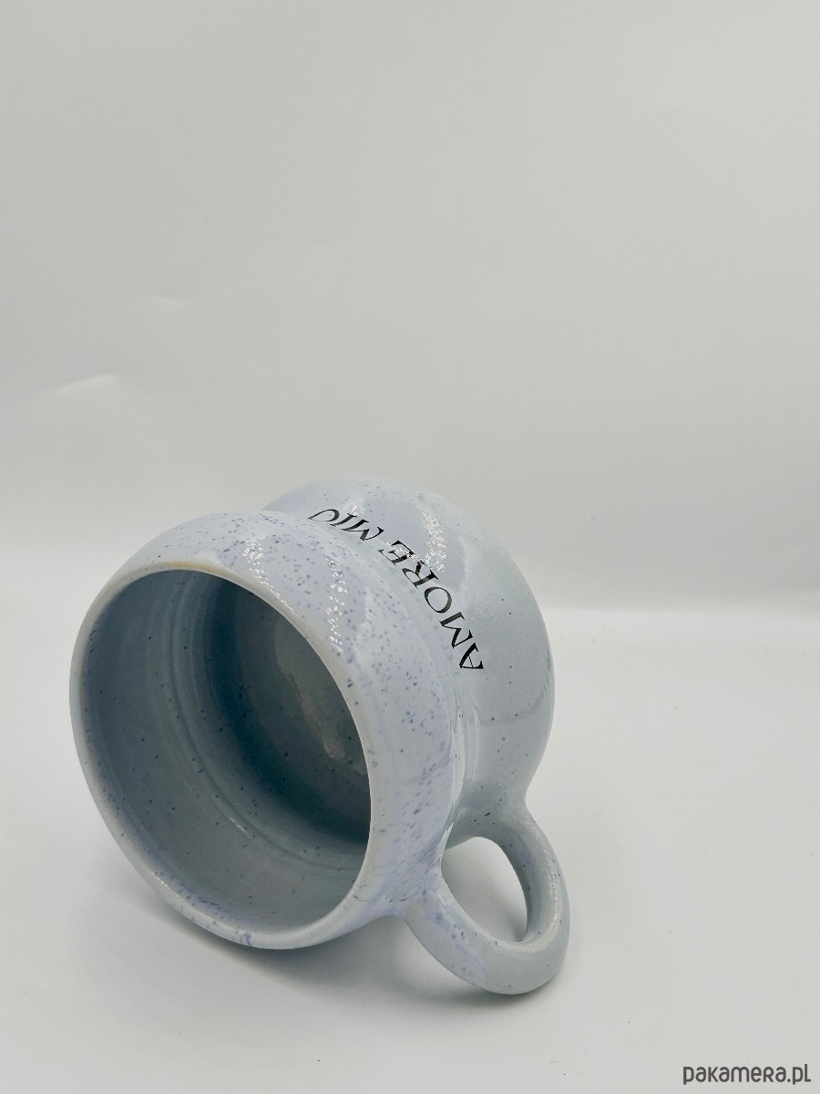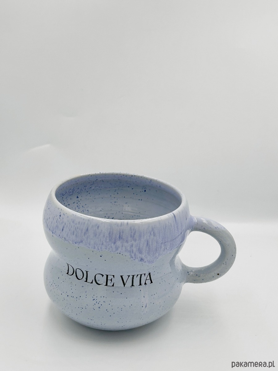 Ręcznie wykonany kubek ceramiczny, szkliwiony pędzlem , o pojemności Ok. 300ml. Kubek wykonany na kole garncarskim - mała produkcja.