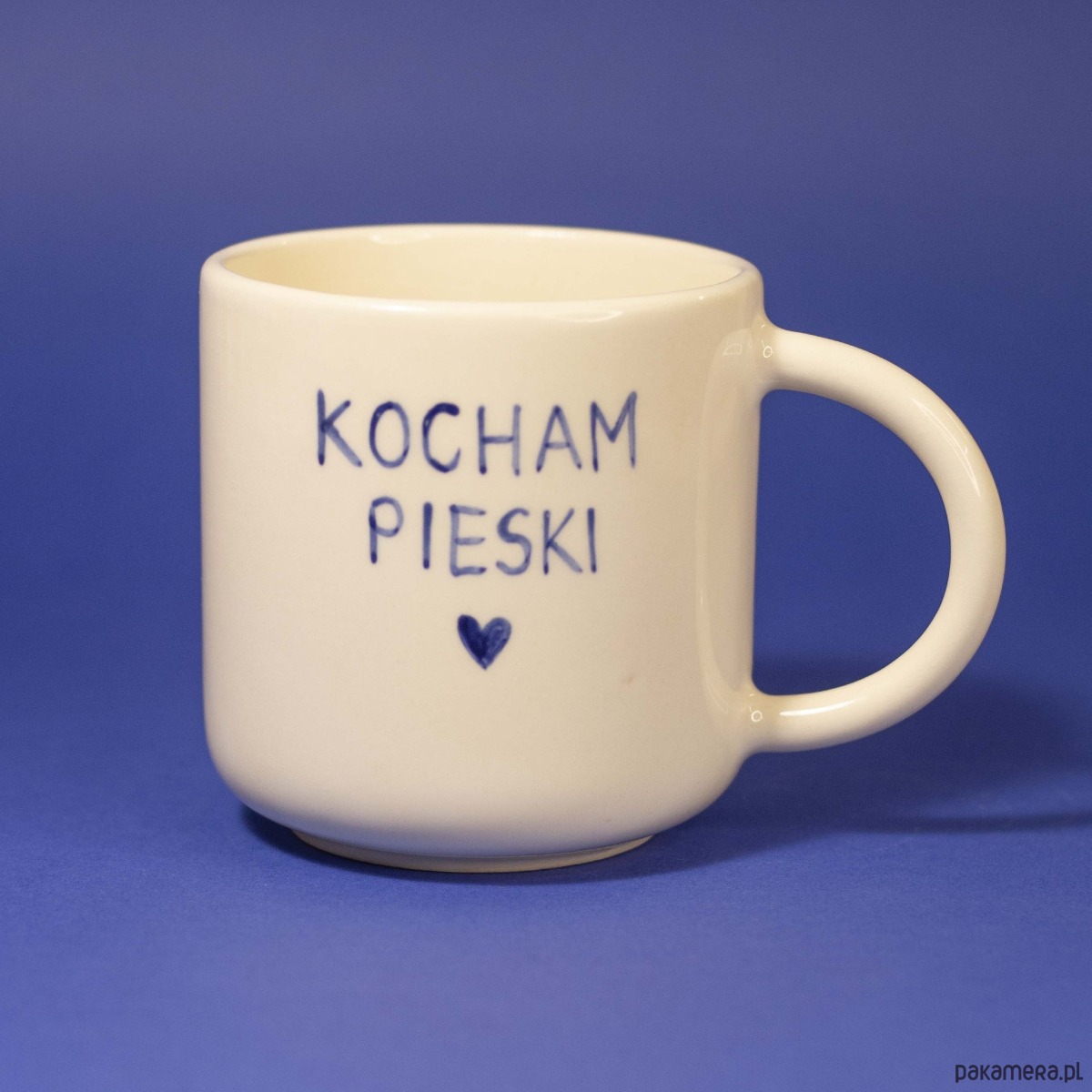 Ceramiczny kubek handmade KOCHAM PIESKI