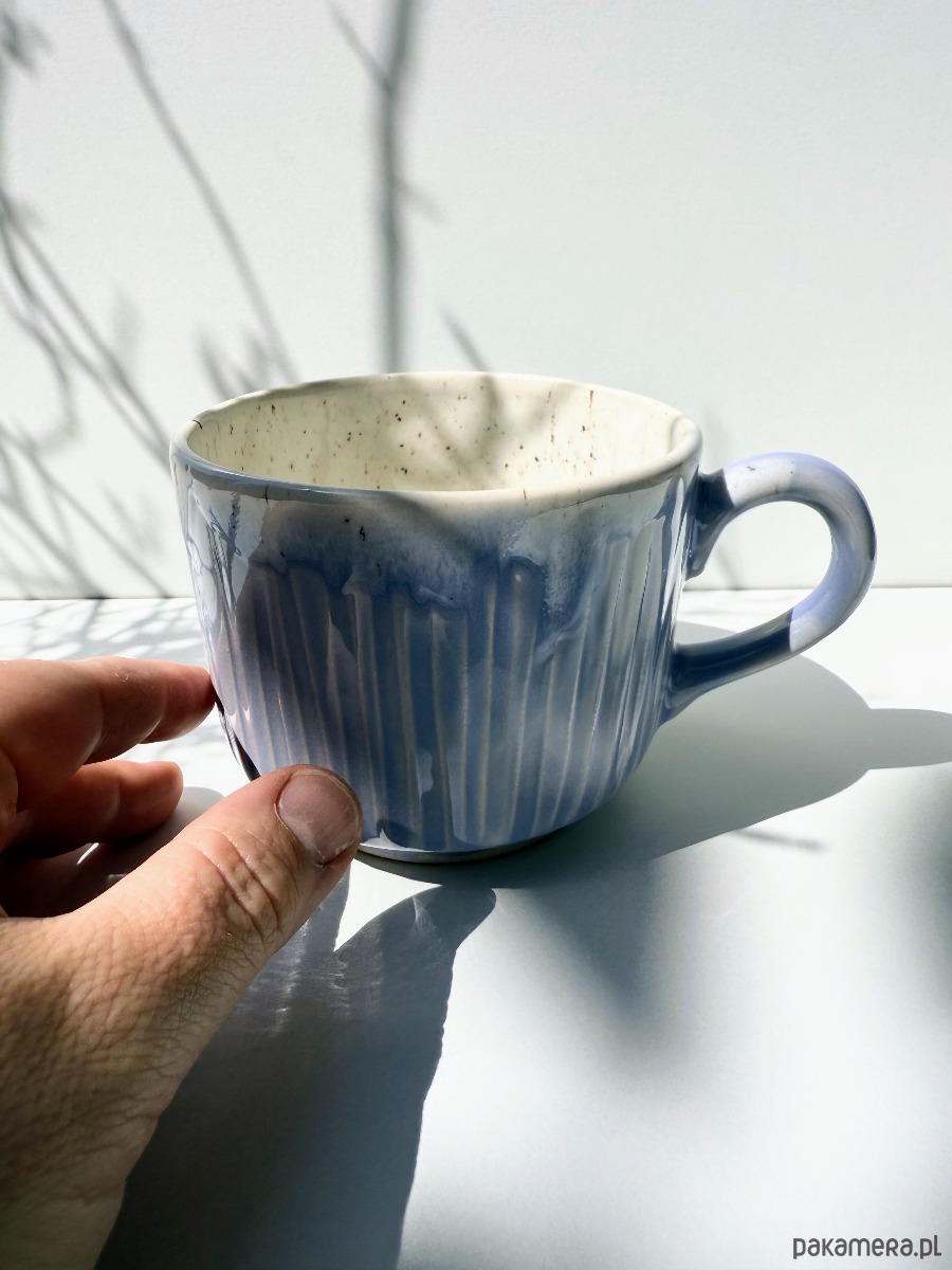 Kubek w kolorze lawendowym, wewnątrz biały z piegami. Idealny na większą herbatę, zioła, kawę bądź czekoladę. Każda sztuka jest unikatowa, wykonana z jasnej gliny.