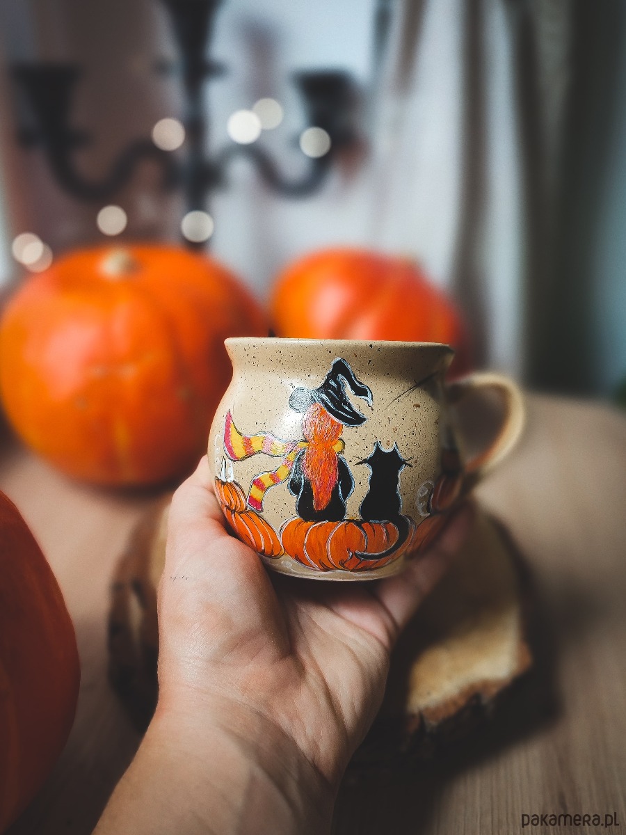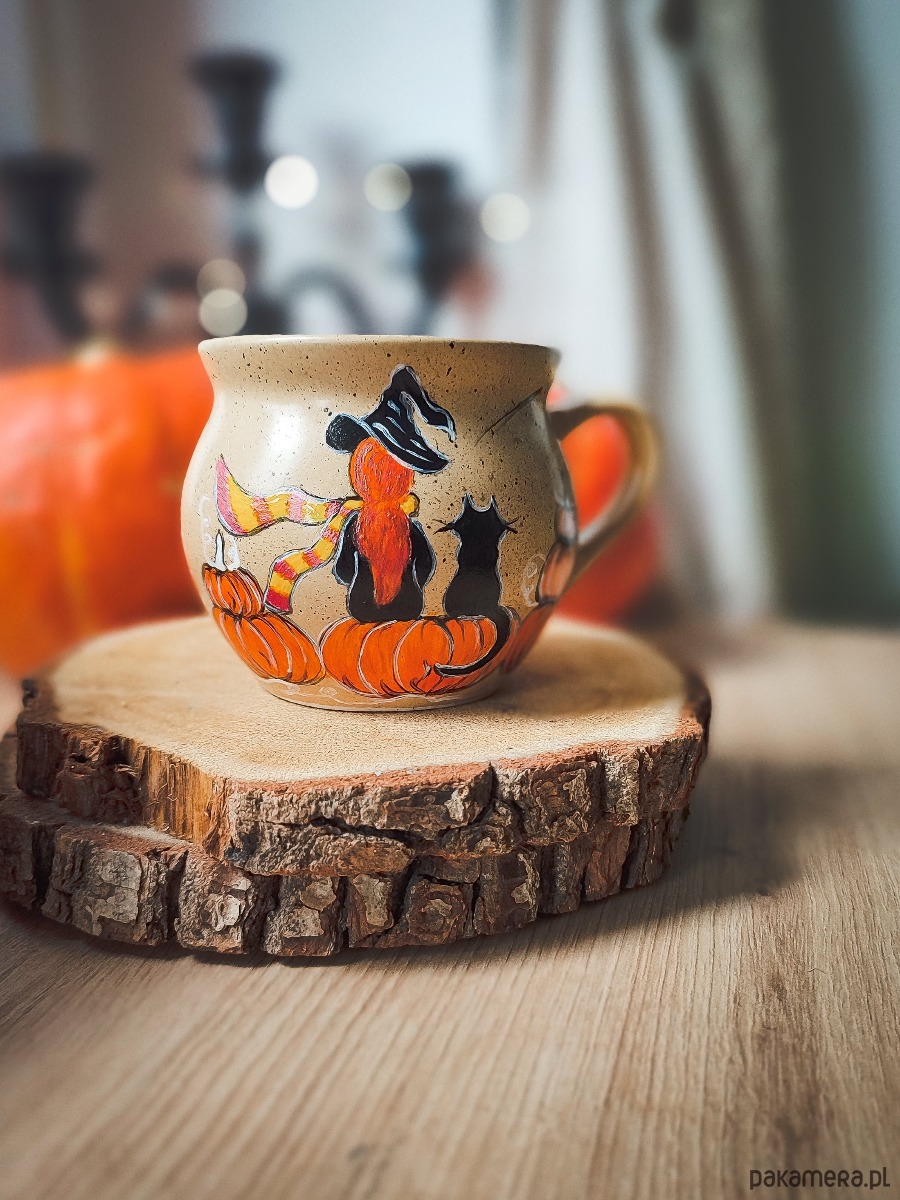 Kubek malowany czarownica i kot