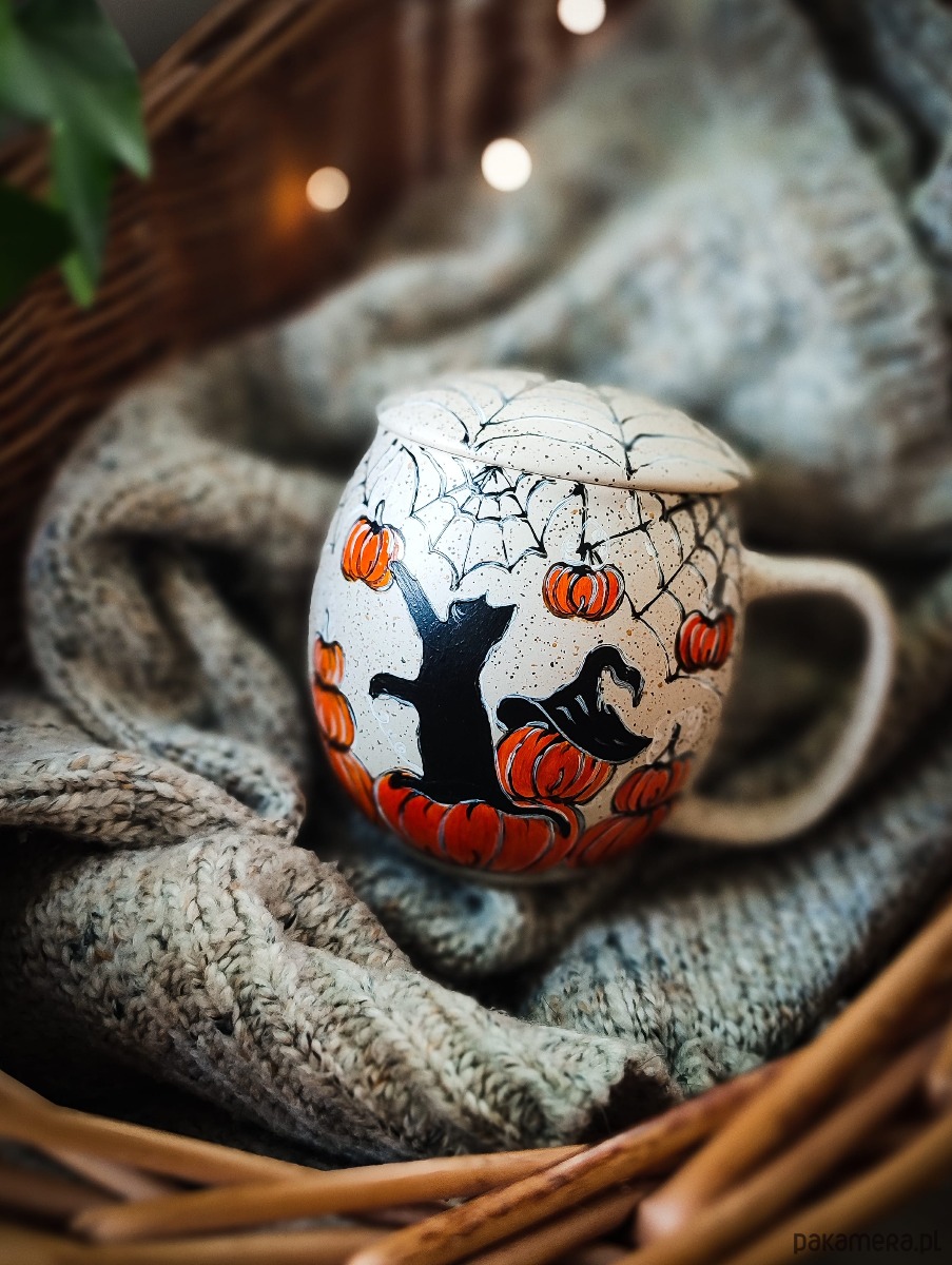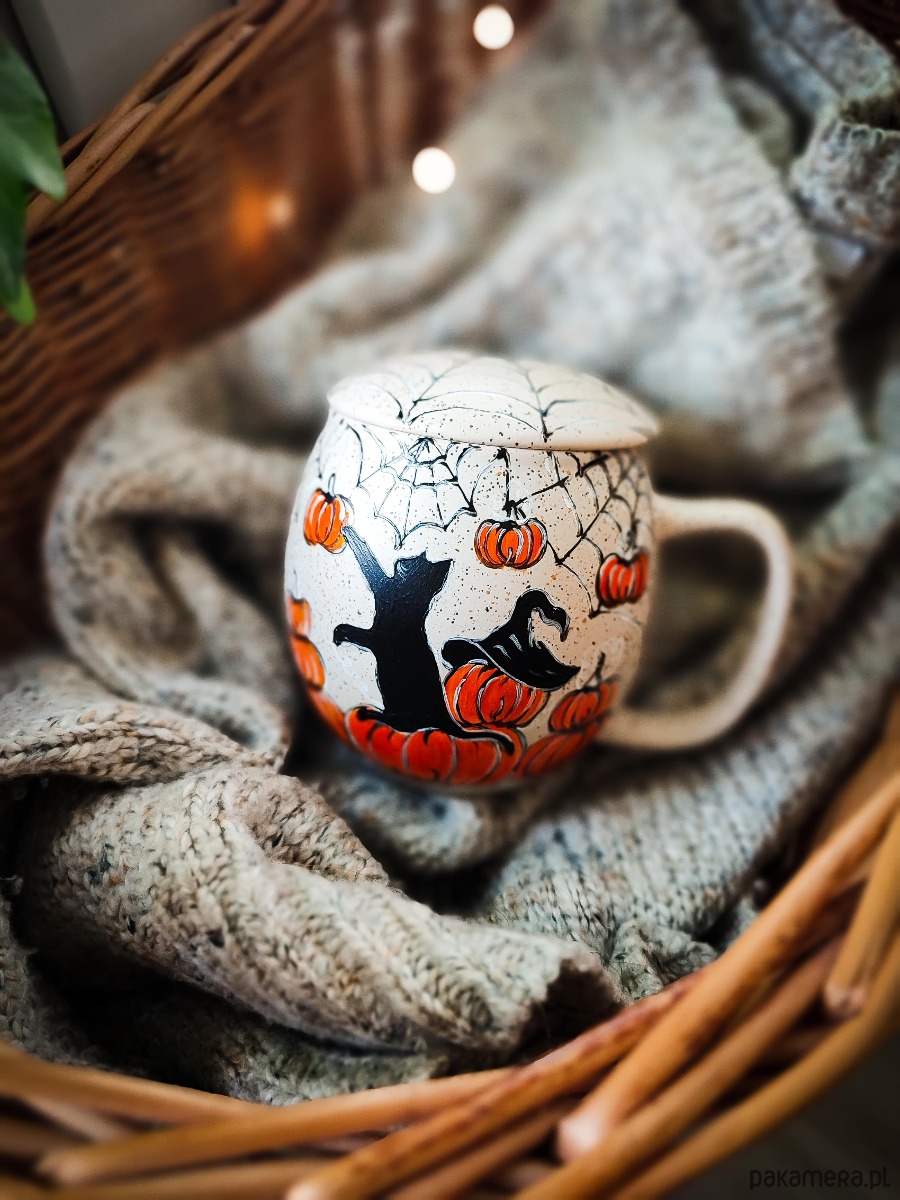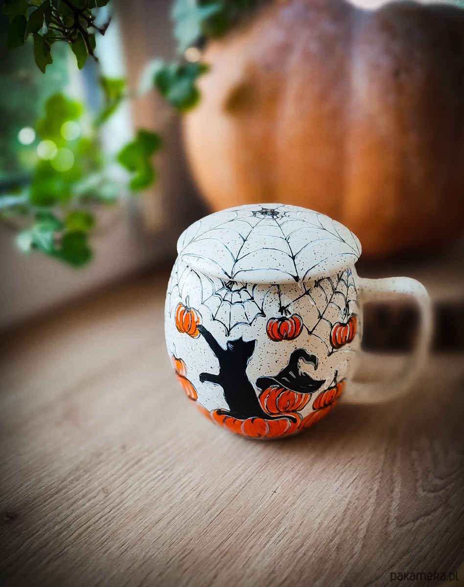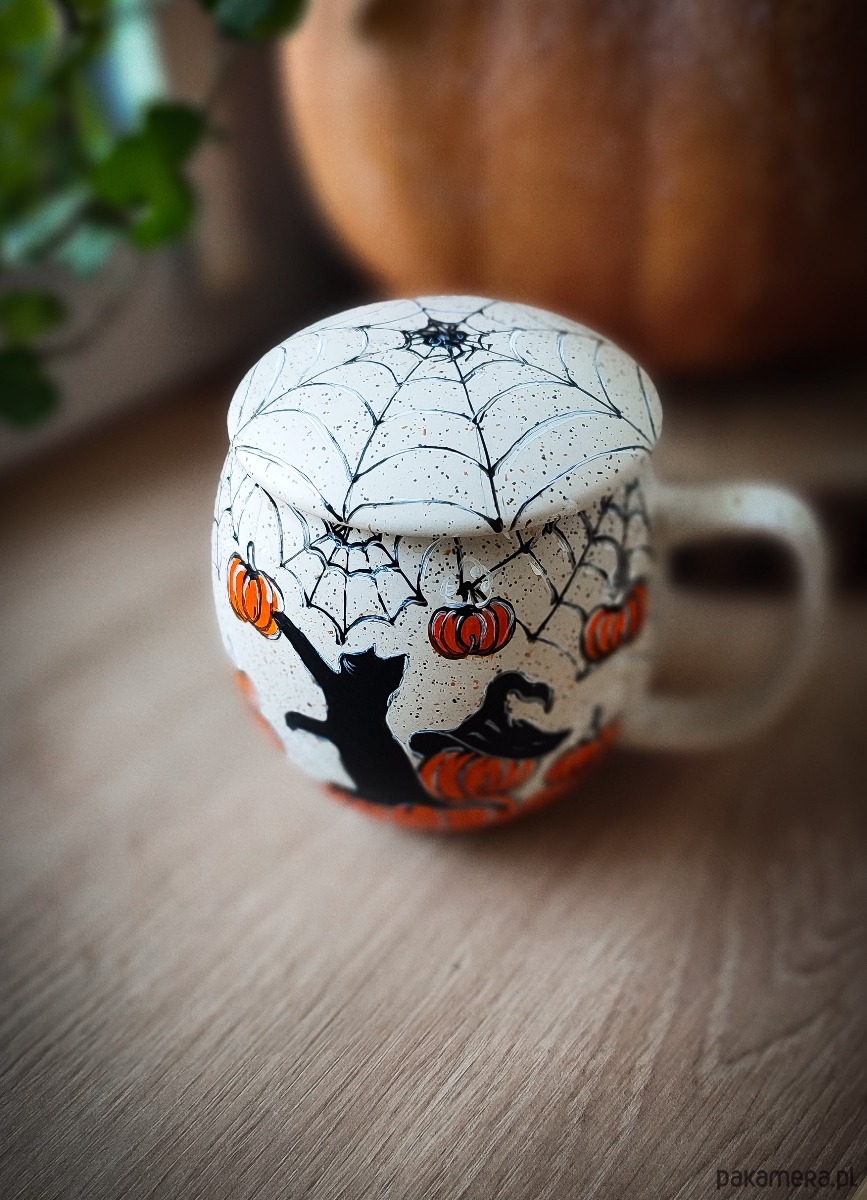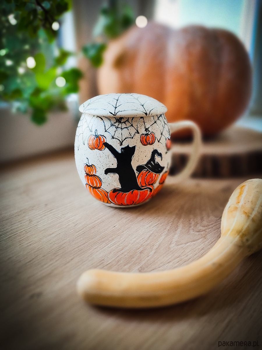 Kubek malowany kot i dynia