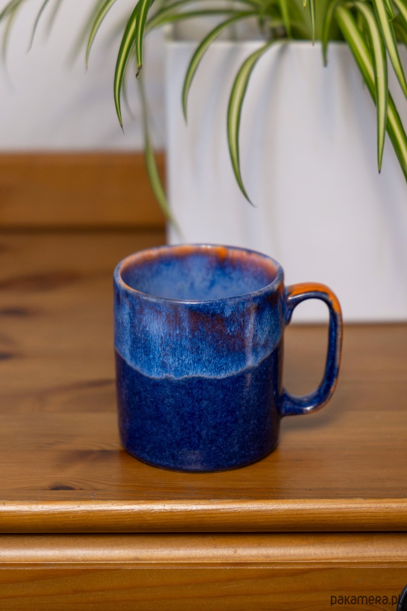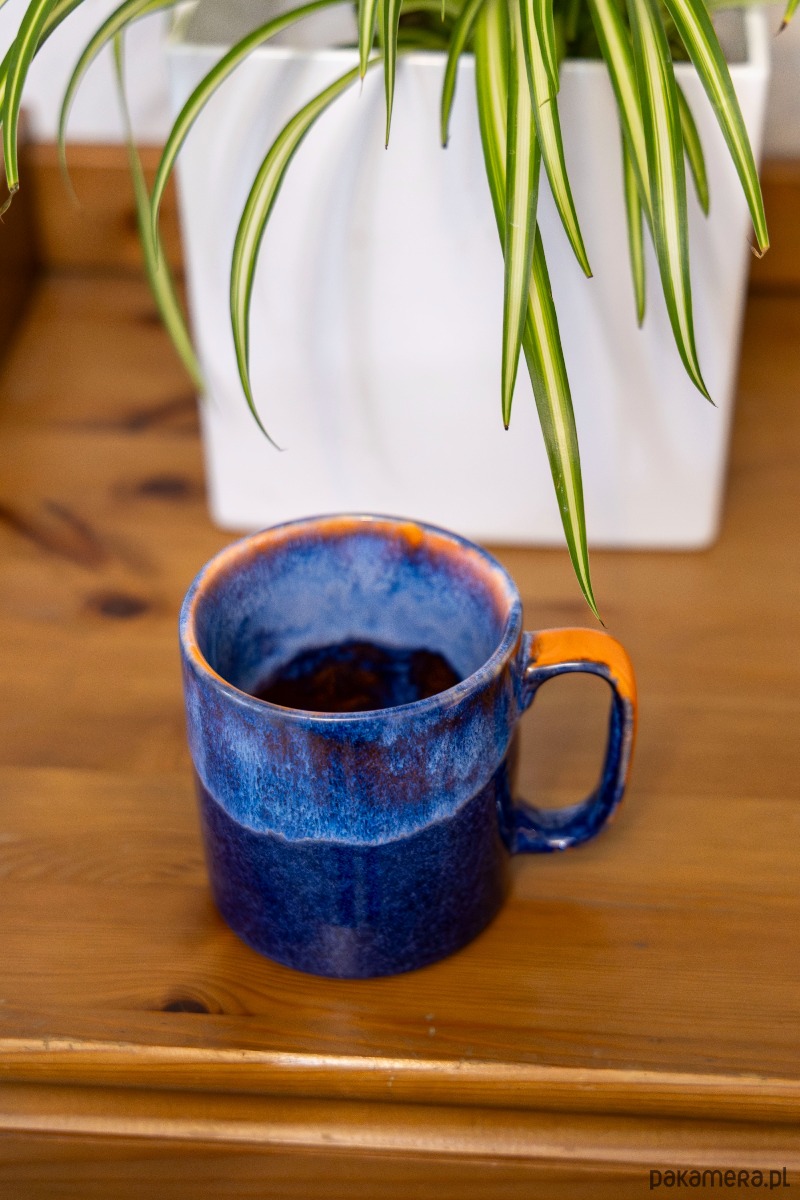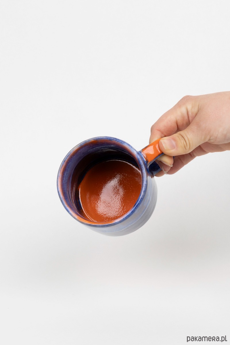 Kubek został poszkliwiony w naszej katowickiej pracowni Szkliwiarnia. Każdy egzemplarz jest wyjątkowy – różnice w szkliwieniu są częścią jego uroku.