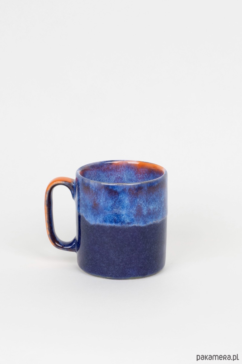 Kubek, który zachwyca spokojnym, a zarazem intrygującym połączeniem barw. U podstawy głęboki, matowy granat – jak nocne niebo tuż przed świtem. Od góry spływa subtelny pomarańcz, ciepły jak pierwsze promienie słońca. Spotykają się w pół drogi, tworząc naturalne przejście między ciemnością a światłem.