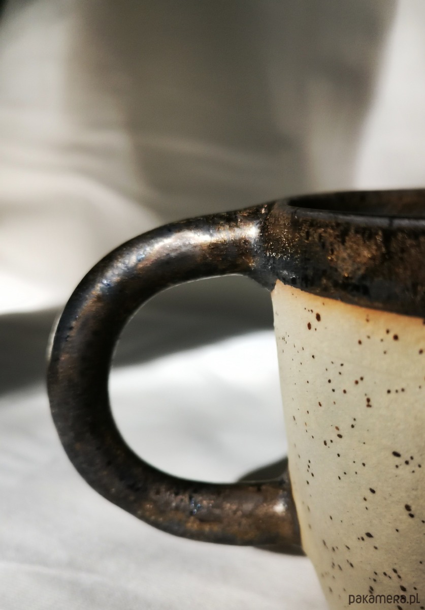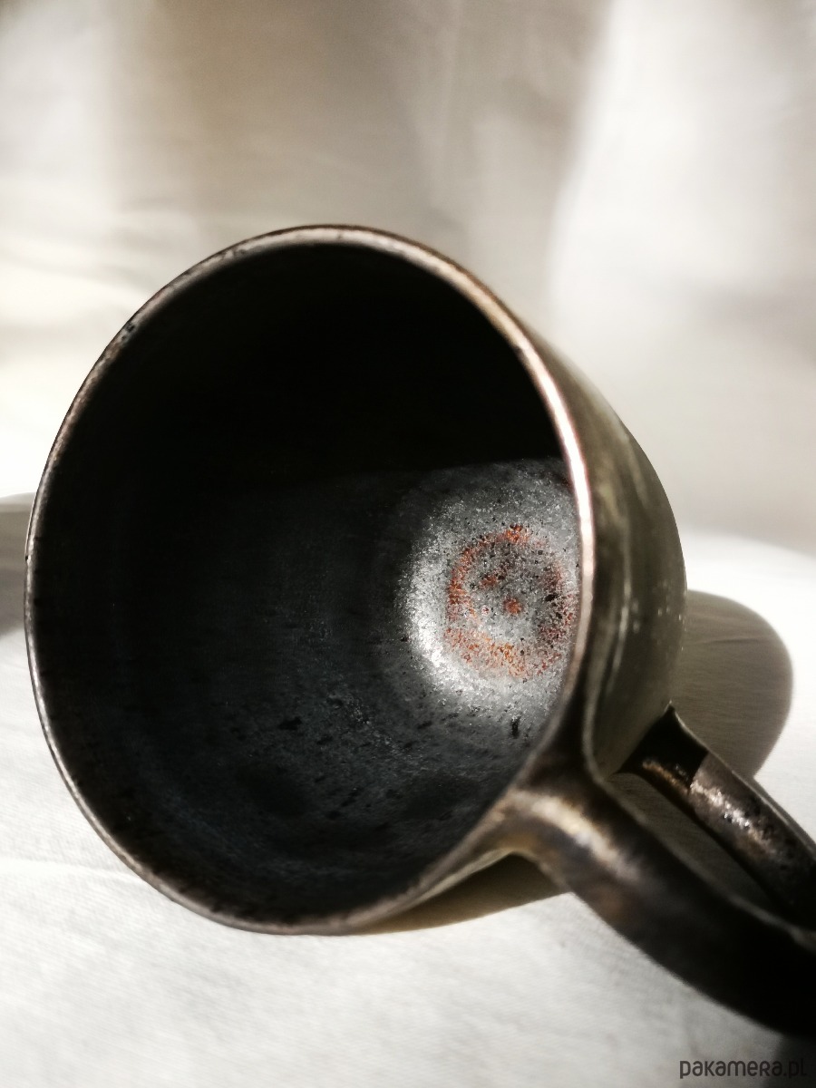 Kubek jest w pełni użytkowy – nadaje się do mikrofali, zmywarki i piekarnika.