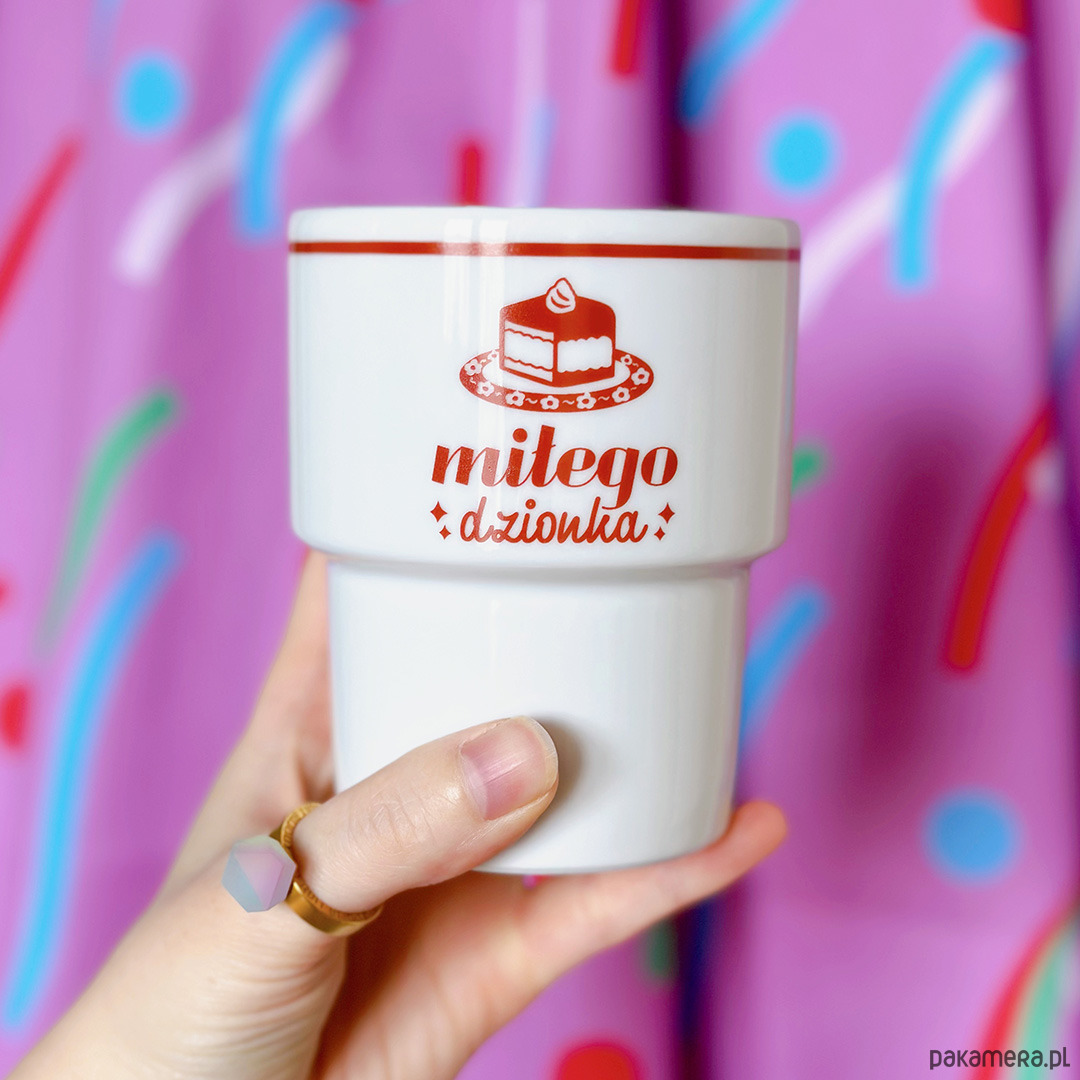 Kubek Miłego dzionka. Co może być lepszego od porannej kawy? Poranna kawusia w ulubionym kubku. Kubek Miłego dzionka poleca się do kawy i herbaty. Miłe pozdrowienie wprawi Cię w dobry humor, a jego kształt kojarzący się z barami mlecznymi z czasów PRLu, osłodzi Twój napój nostalgią.