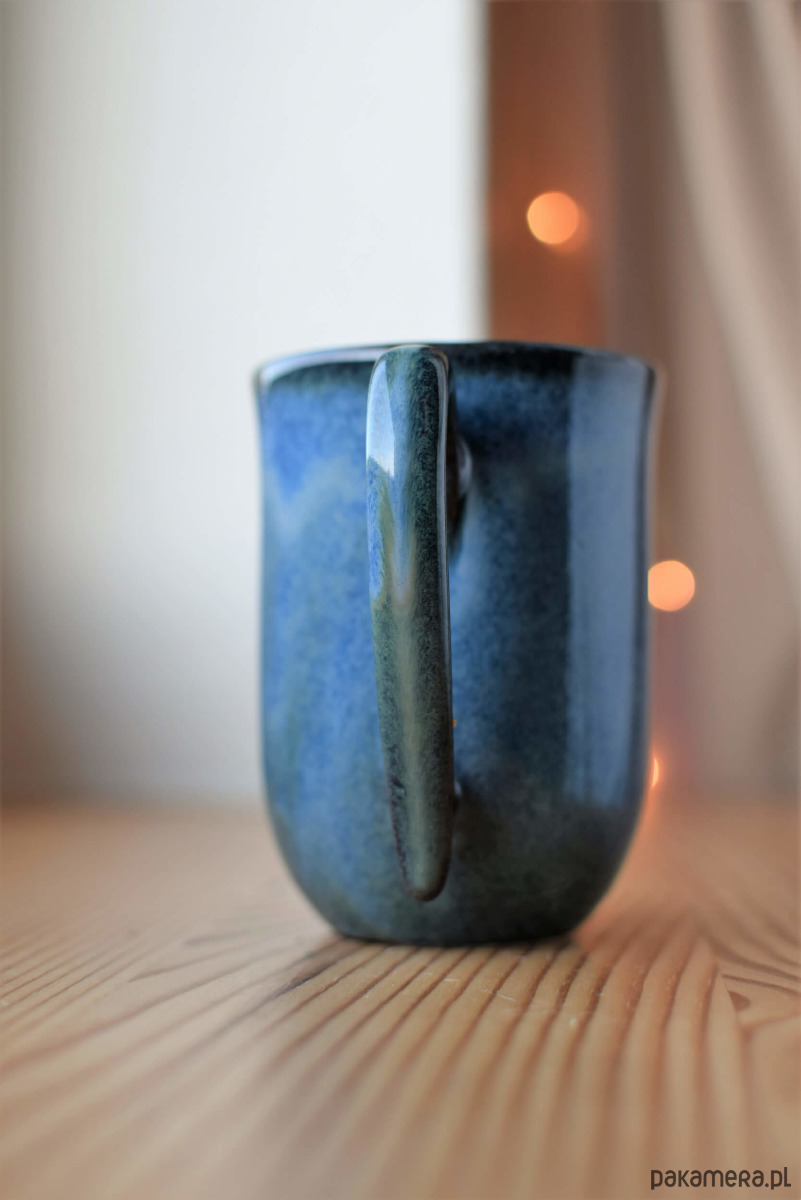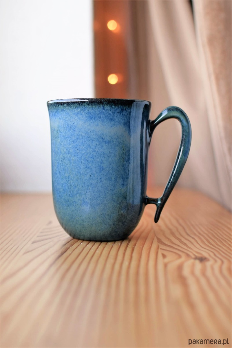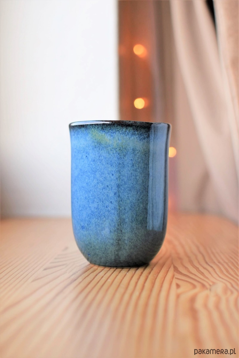 Pokryta szkliwem bezpiecznym w kontakcie z żywnością. Morskie szkliwo daje za każdym razem troszkę inny efekt - zdarza się, że nawet 2 boki tego samego kubka mogą różnić się odcieniami.