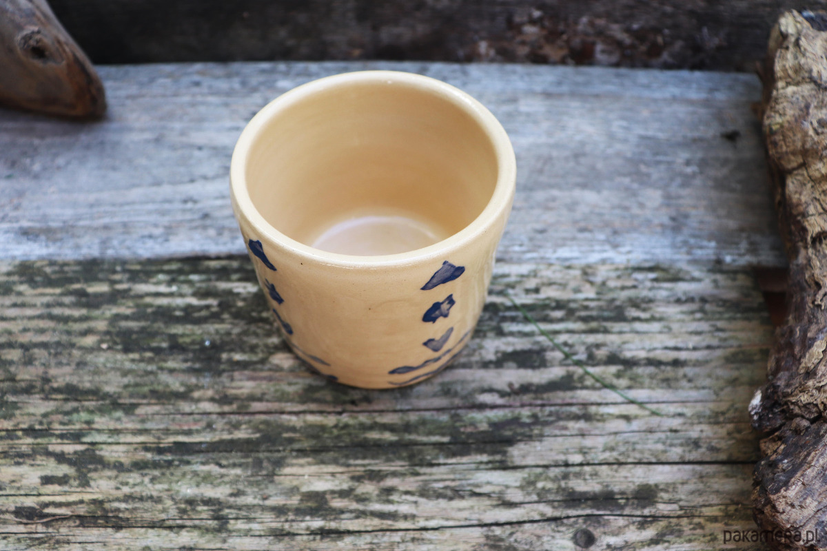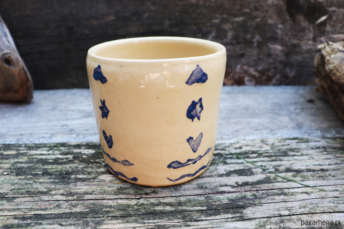 Tradycyjne folkowe wycinanki zdobią powierzchnię kubka, a ręczne malowanie dodaje mu niepowtarzalnego uroku.