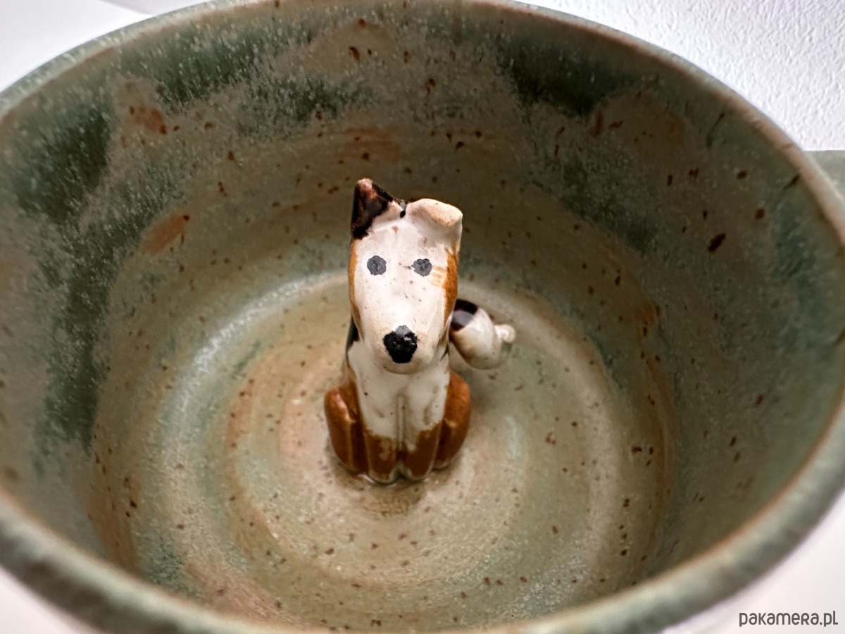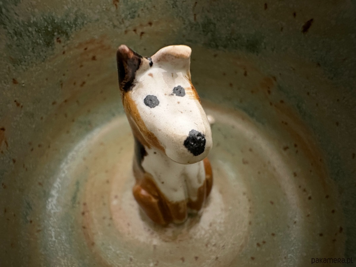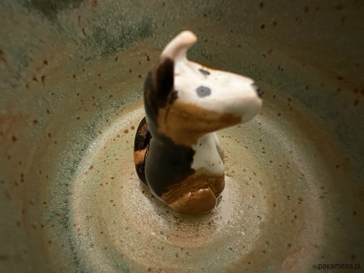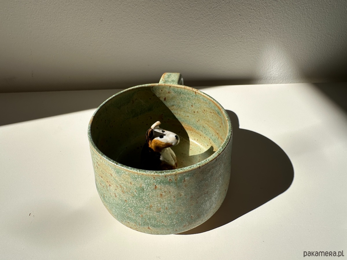 Każdy egzemplarz został ręcznie wytoczony na kole garncarskim z kropkowanej gliny, co nadaje mu niepowtarzalny charakter. Wnętrze kubka skrywa niespodziankę – uroczą figurkę pieska w biało-czarno-brązowe łatki, która wywoła uśmiech przy każdym łyku kawy czy herbaty.