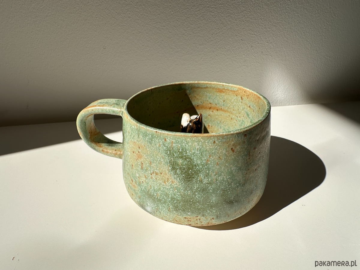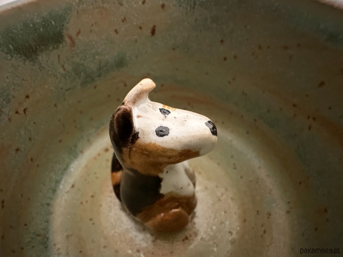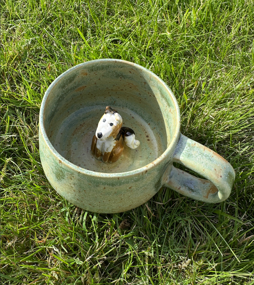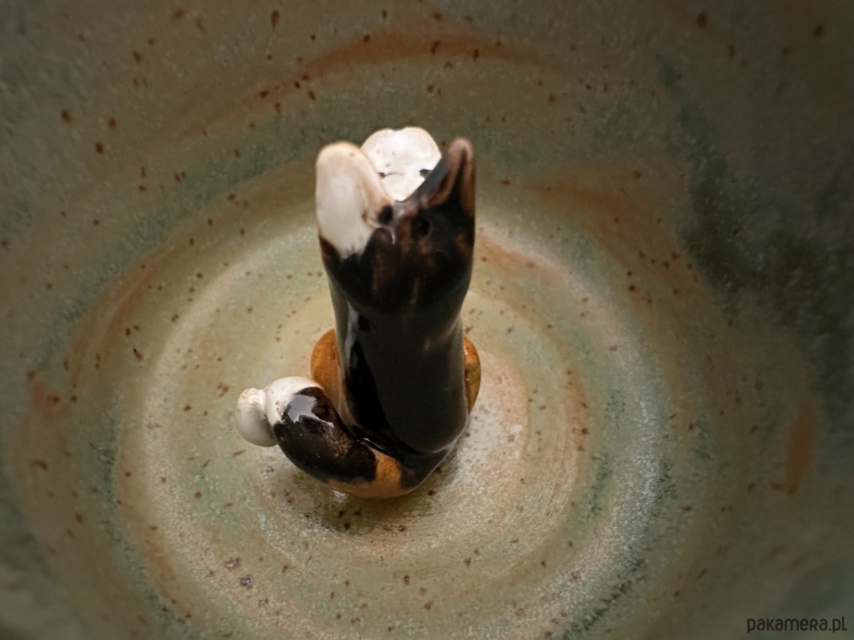 Każdy egzemplarz został ręcznie wytoczony na kole garncarskim z kropkowanej gliny, co nadaje mu niepowtarzalny charakter. Wnętrze kubka skrywa niespodziankę – uroczą figurkę pieska w biało-czarno-brązowe łatki, która wywoła uśmiech przy każdym łyku kawy czy herbaty.