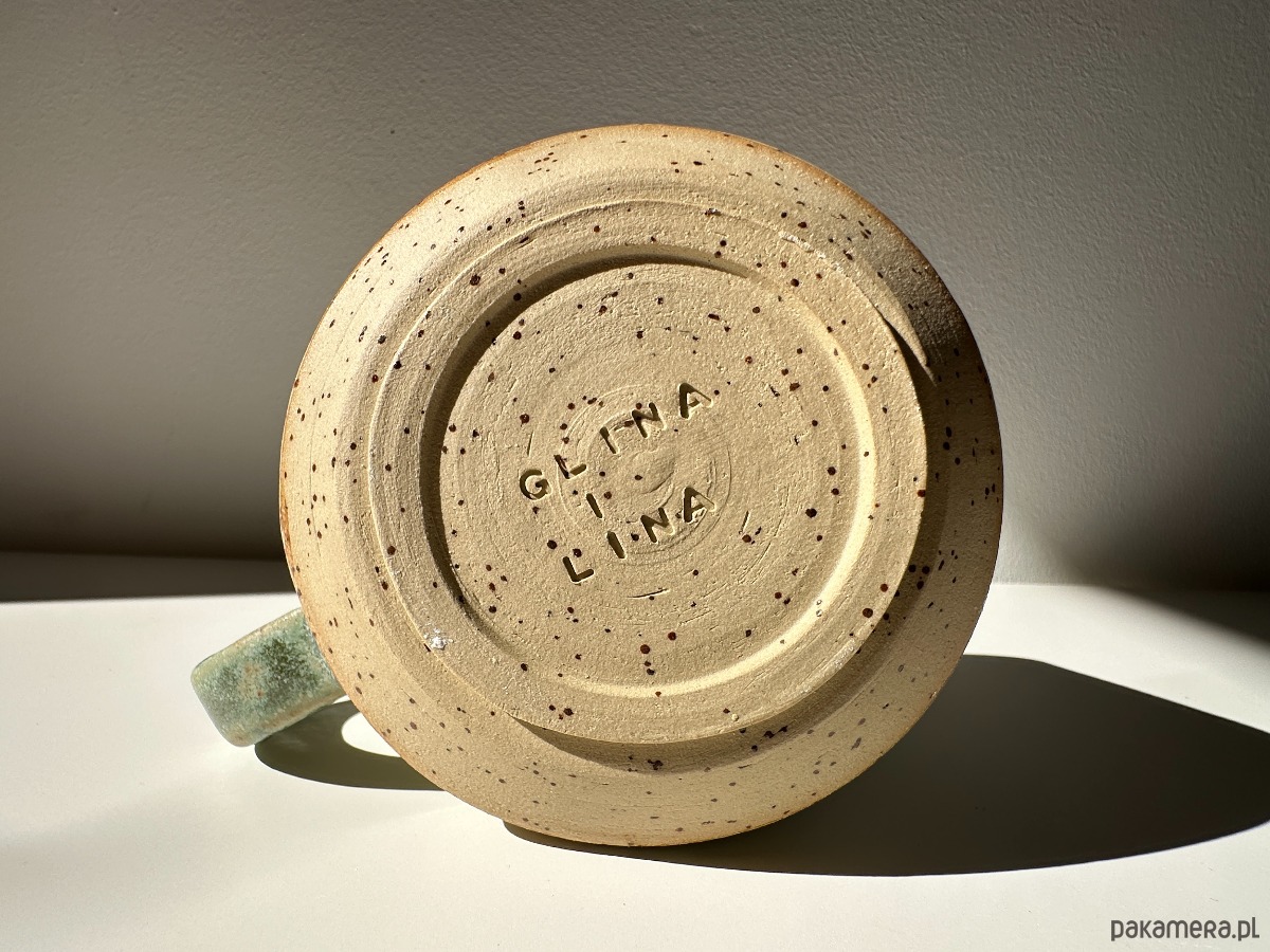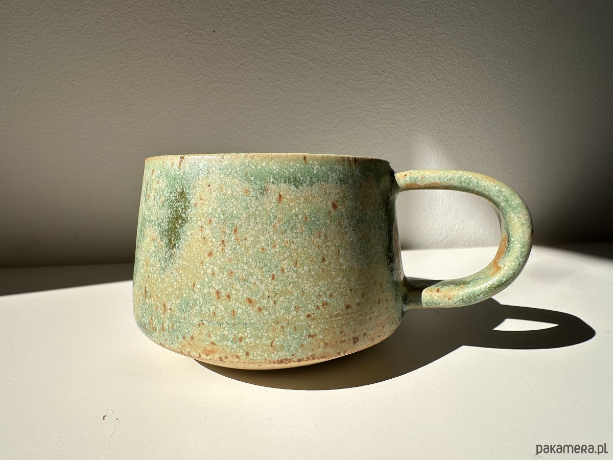 Kubek został pokryty zielonkawym szkliwem i wypalony w wysokiej temperaturze, dzięki czemu jest trwały, bezpieczny w kontakcie z żywnością i idealny do codziennego użytku. Jego pojemność to około 310 ml – w sam raz na ulubioną poranną kawę lub wieczorną herbatę.