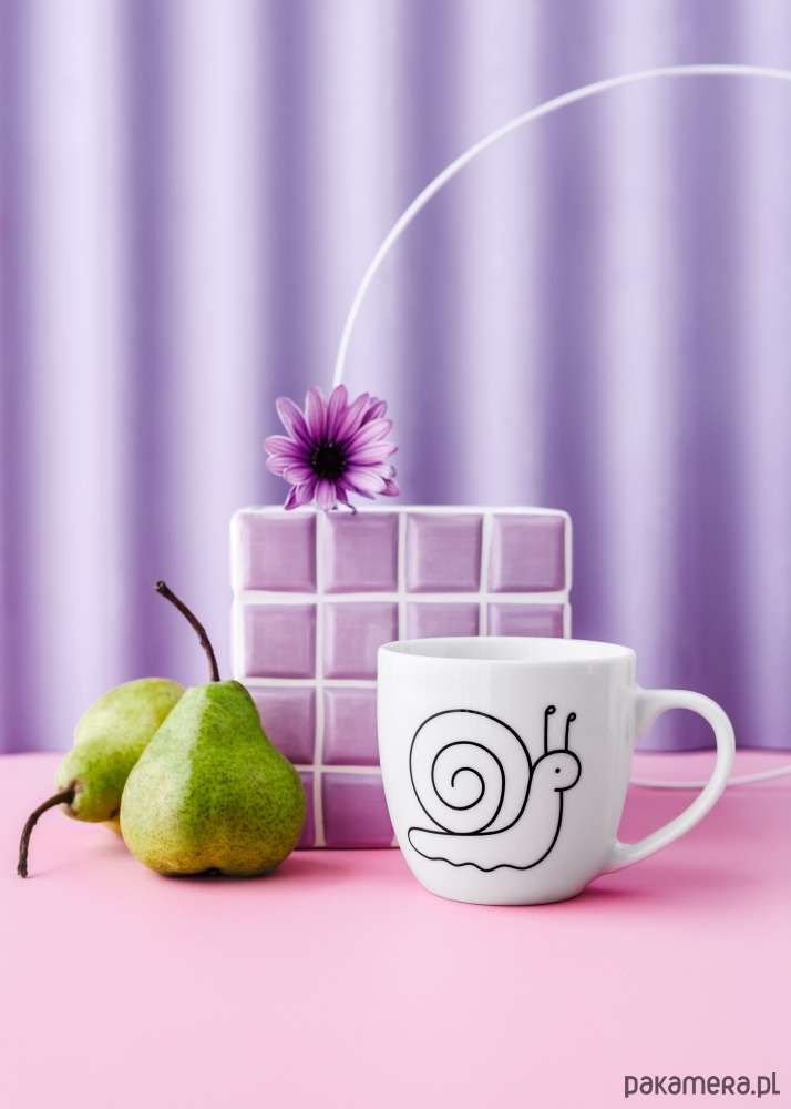 Wysokiej jakości biały kubek ceramiczny (POJEMNOŚĆ 300ML, kształt taki jak "ślimak" na zdjęciu) ręcznie malowany według autorskiego projektu.