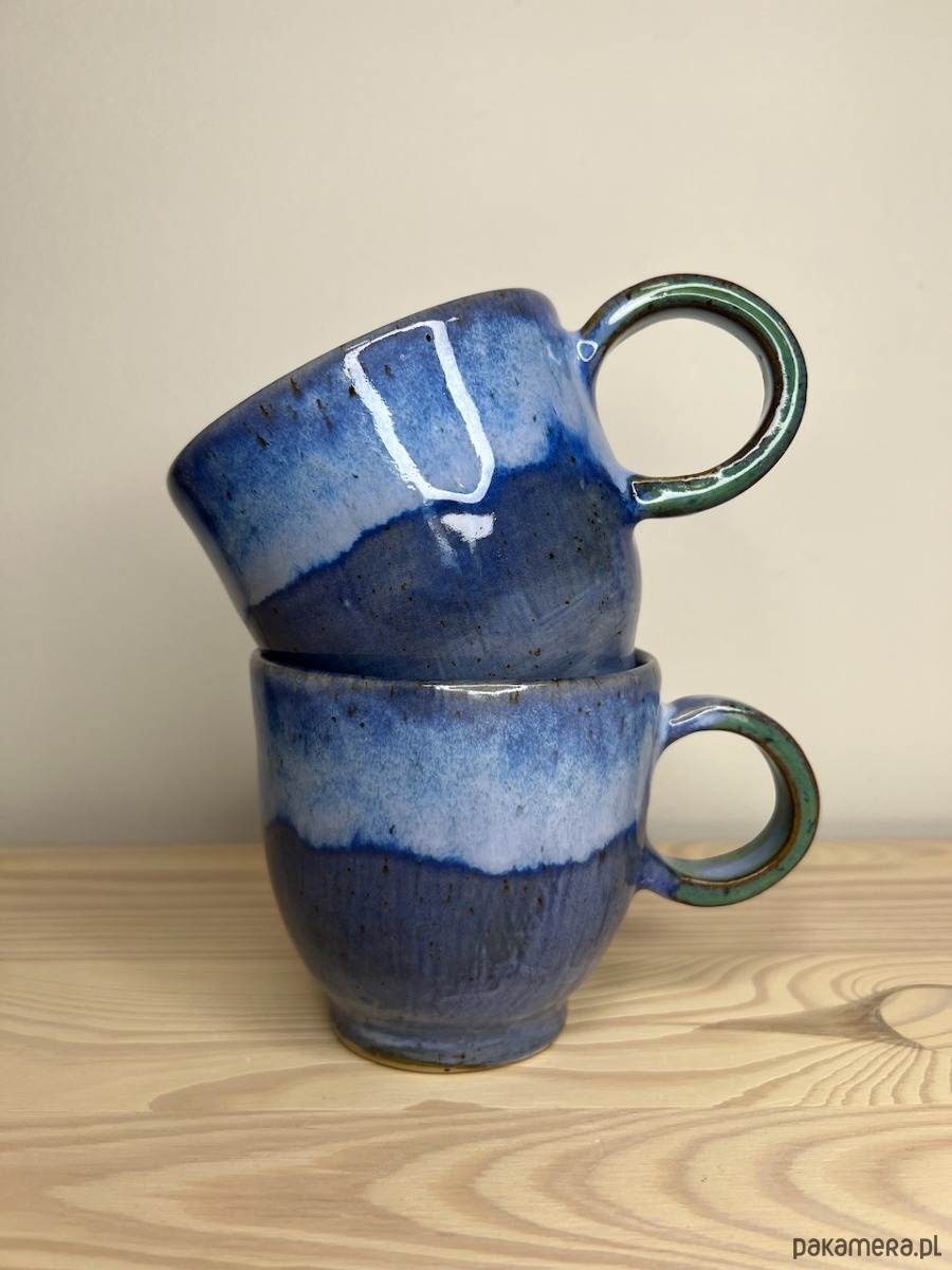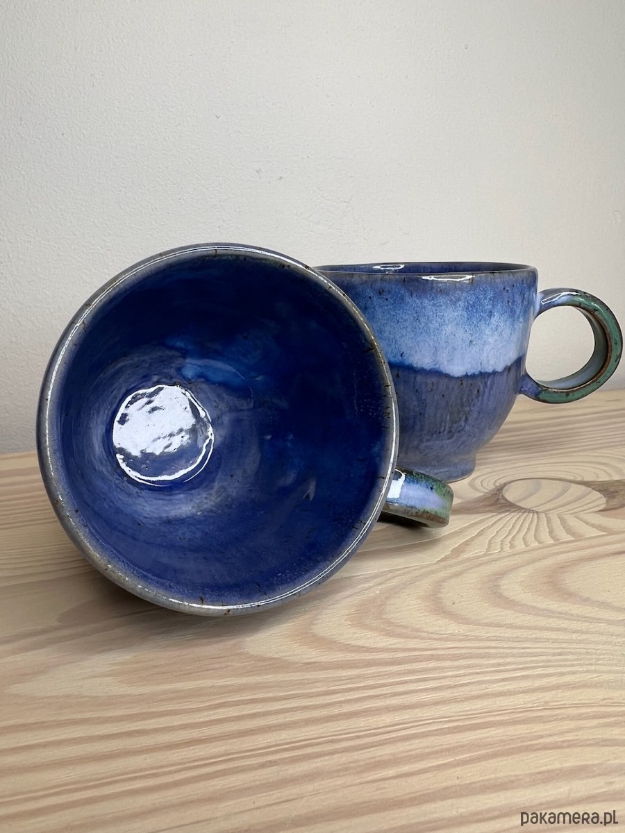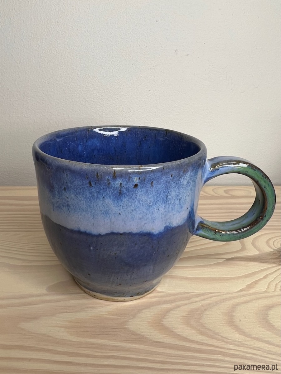 Kubek wykonany z gliny kamionkowej, pokryty wewnątrz i na zewnątrz szkliwem dopuszczonym do kontaktu z żywnością.