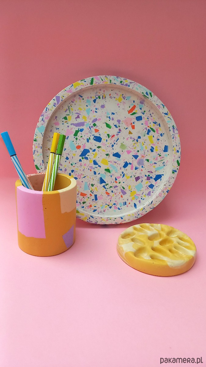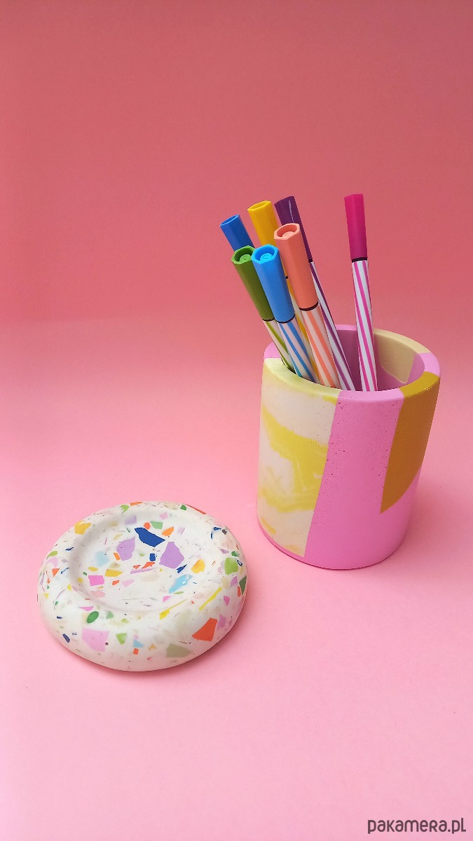 Okrągły pojemnik lastryko do przechowywania i organizacji akcesoriów. Przyda się w łazience - na kosmetyki, akcesoria do pielęgnacji, na biurku - do porządkowania długopisów i innych drobiazgów.