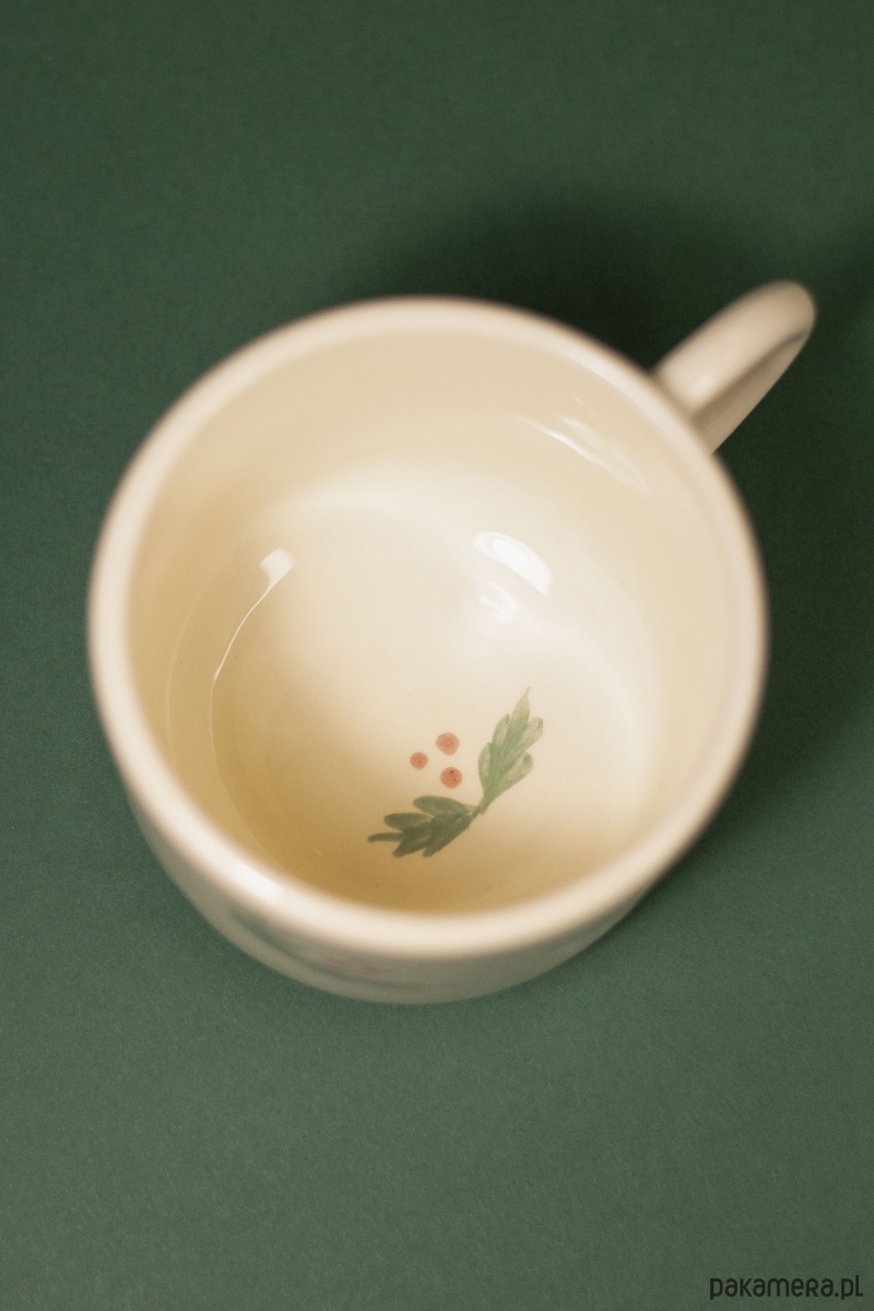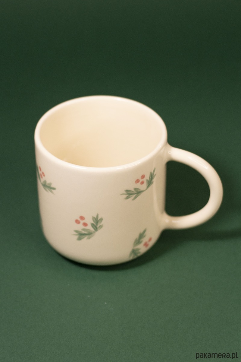 Kubek OSTROKRZEW to prosty kształt z ręcznie malowanymi wzorami ostrokrzewu, które na każdym kubku układają się inaczej, a to sprawia, że naczynia są niepowtarzalne i unikatowe. Kubki idealnie sprawdzą się na kawę lub ceremonialne kakao, a pojemność 450 ml pomieści zarówno americano, jak i cappucino.