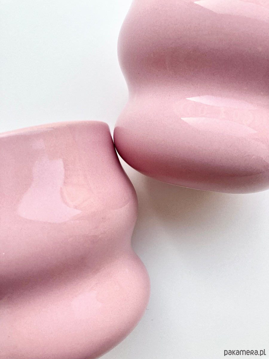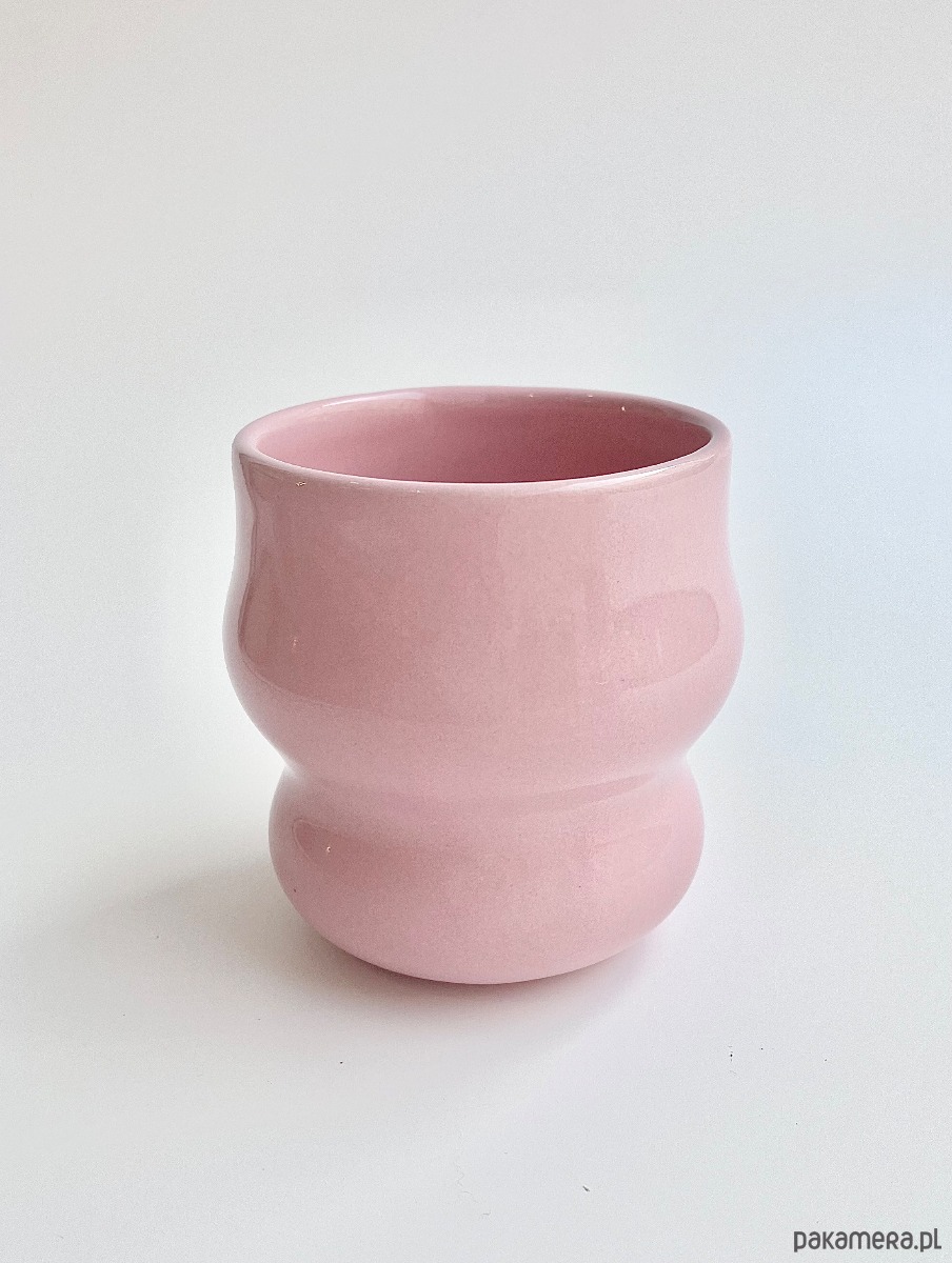 Ten uroczy kubeczek o pojemności 200 ml wyróżnia się charakterystyczną, organiczną formą z delikatnymi falami, które nadają mu miękki i nowoczesny wygląd. Wykonany z ceramiki i pokryty jednolitą, pasteloworóżową glazurą, pięknie odbija światło, tworząc subtelny połysk.