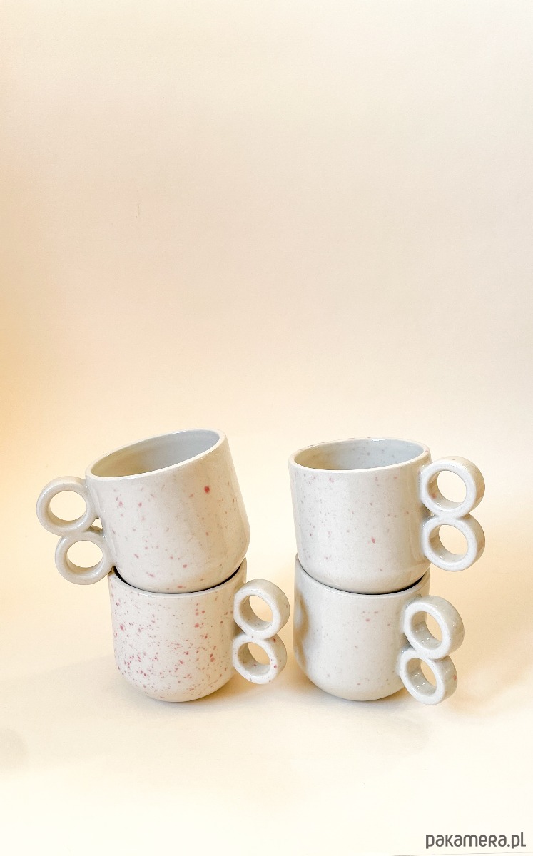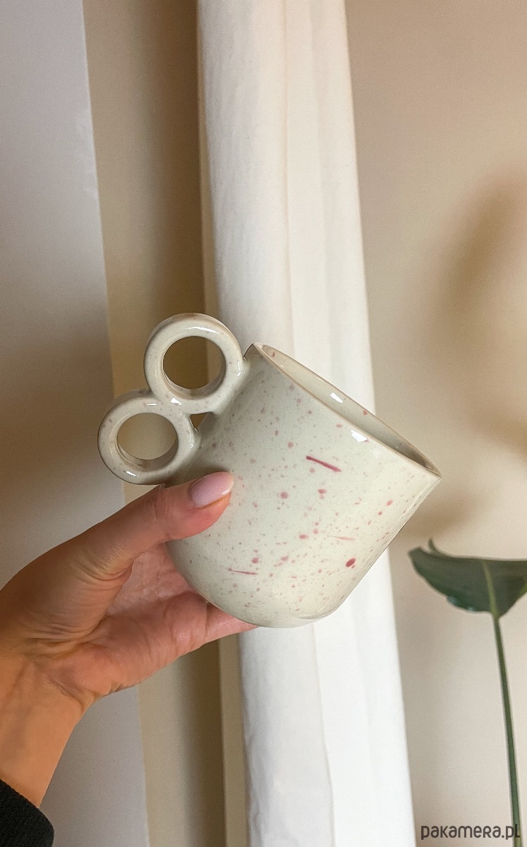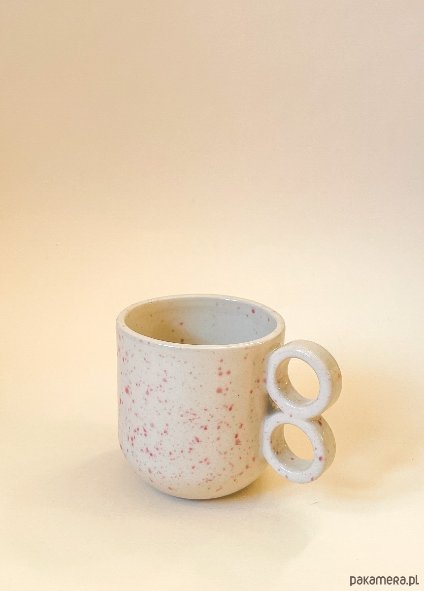 Kubek podwójne ucho [kolor: beżowy w różowe ciapki] 330 ml