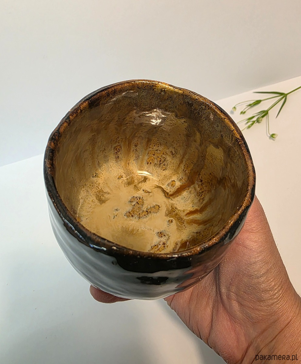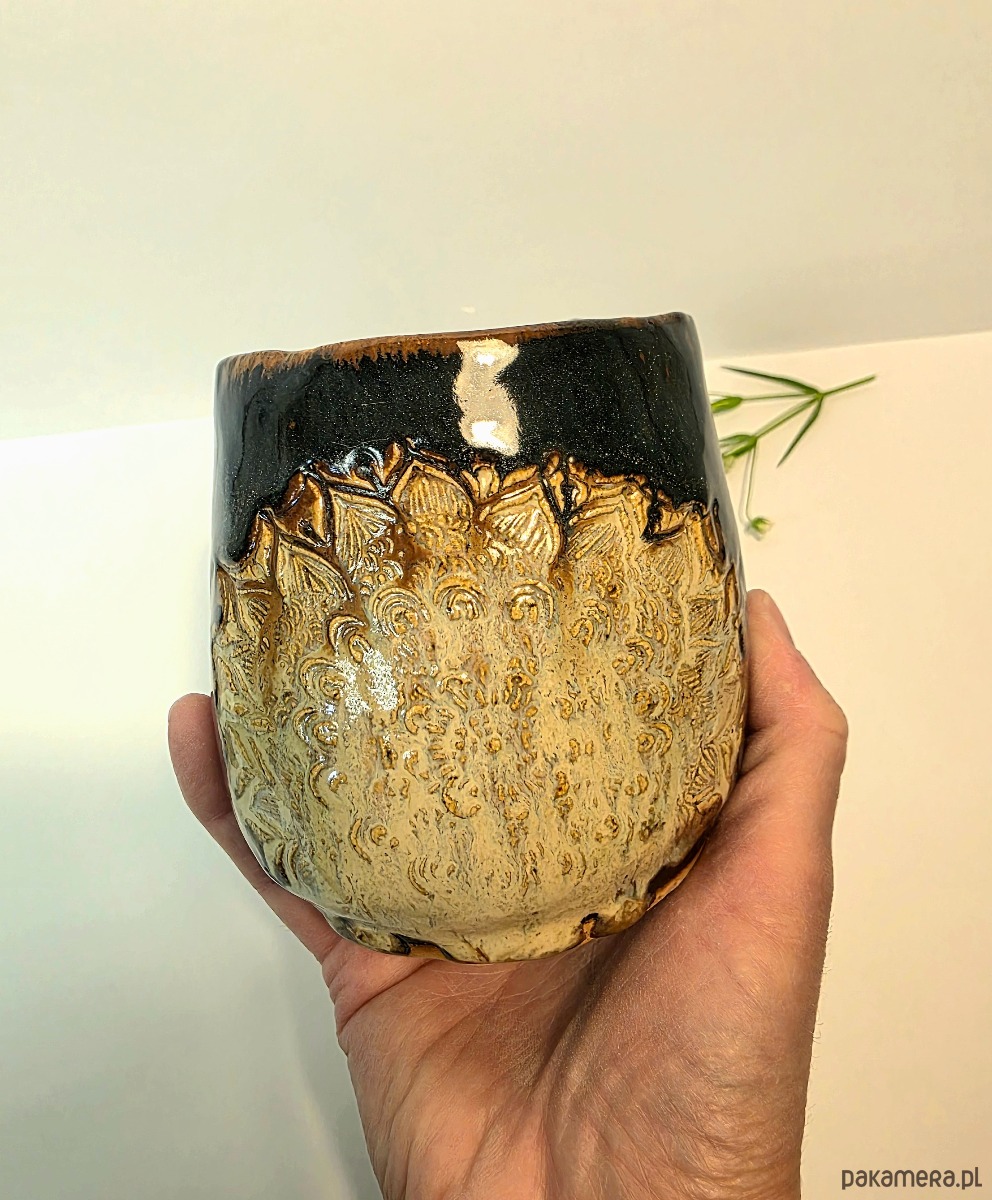 Unikatowy ceramiczny kubek wykonany ręcznie z motywem mandali.