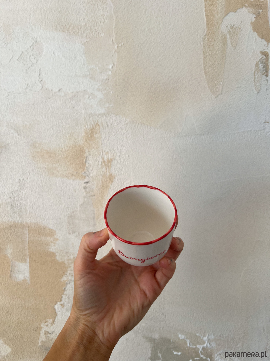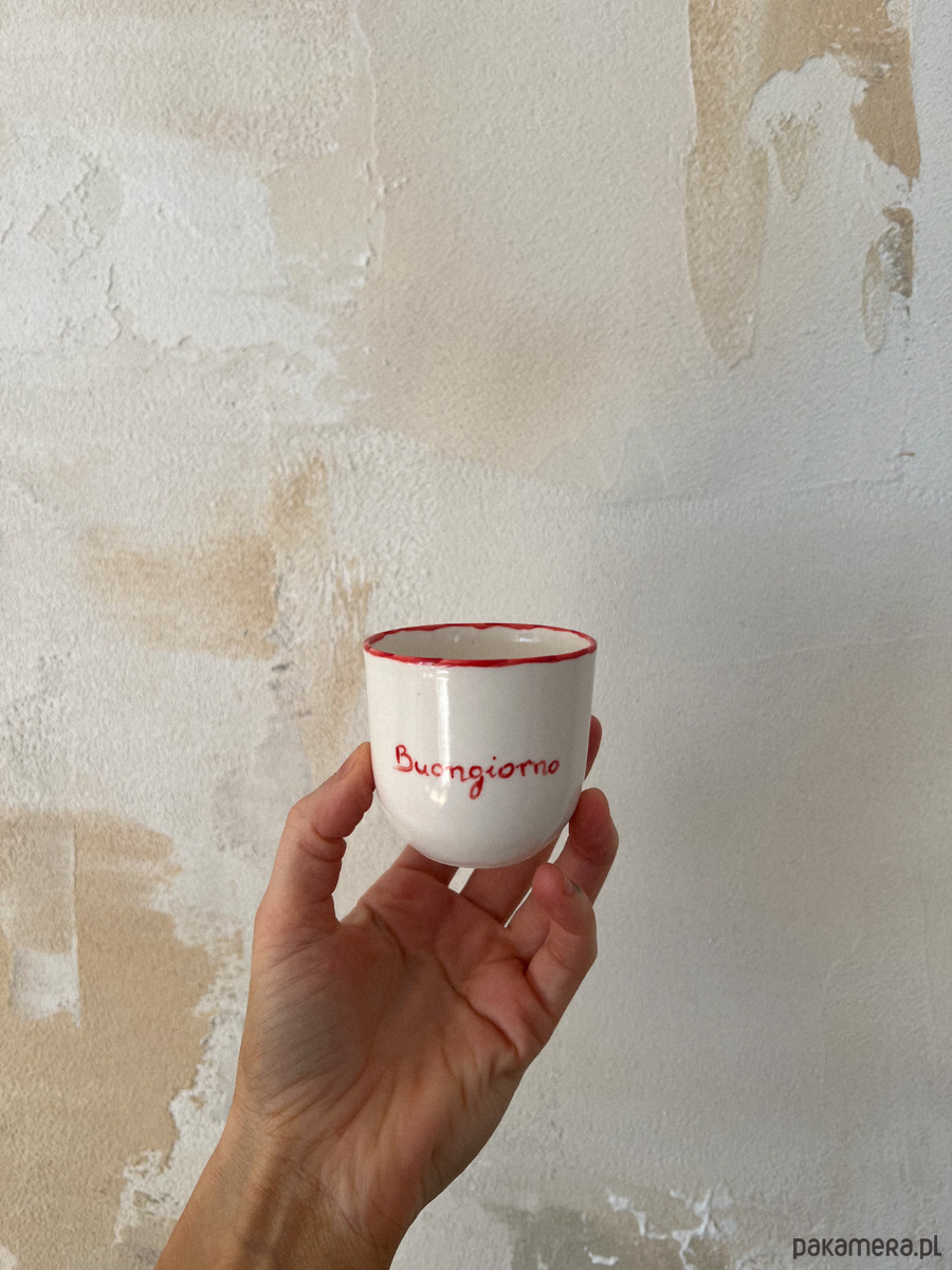 Porcelanowy kubek na podwójne espresso z napisem Buongiorno.