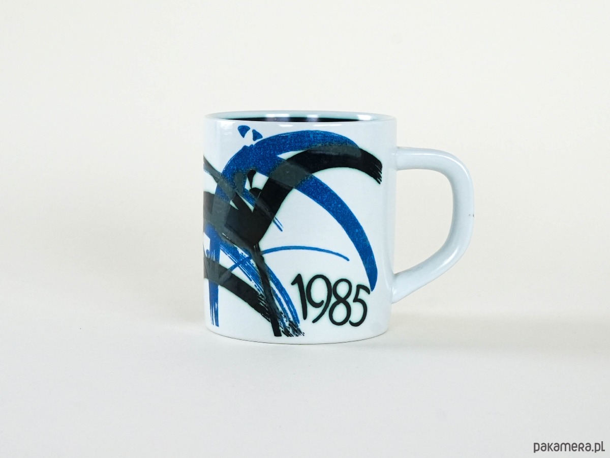 Wyjątkowy kubek rocznicowy Royal Copenhagen z 1985 roku, autorstwa duńskiego malarza i grafika Mogensa Andersena. Model z edycji limitowanej, dekorowany ekspresyjnym, abstrakcyjnym motywem w odcieniach kobaltu, zieleni i czerni, charakterystycznym dla twórczości artysty. Kolekcjonerska ceramika lat 80., łącząca sztukę współczesną z klasycznym rzemiosłem skandynawskim. Rzadki i ceniony egzemplarz, idealny dla miłośników designu vintage i porcelany z historią.