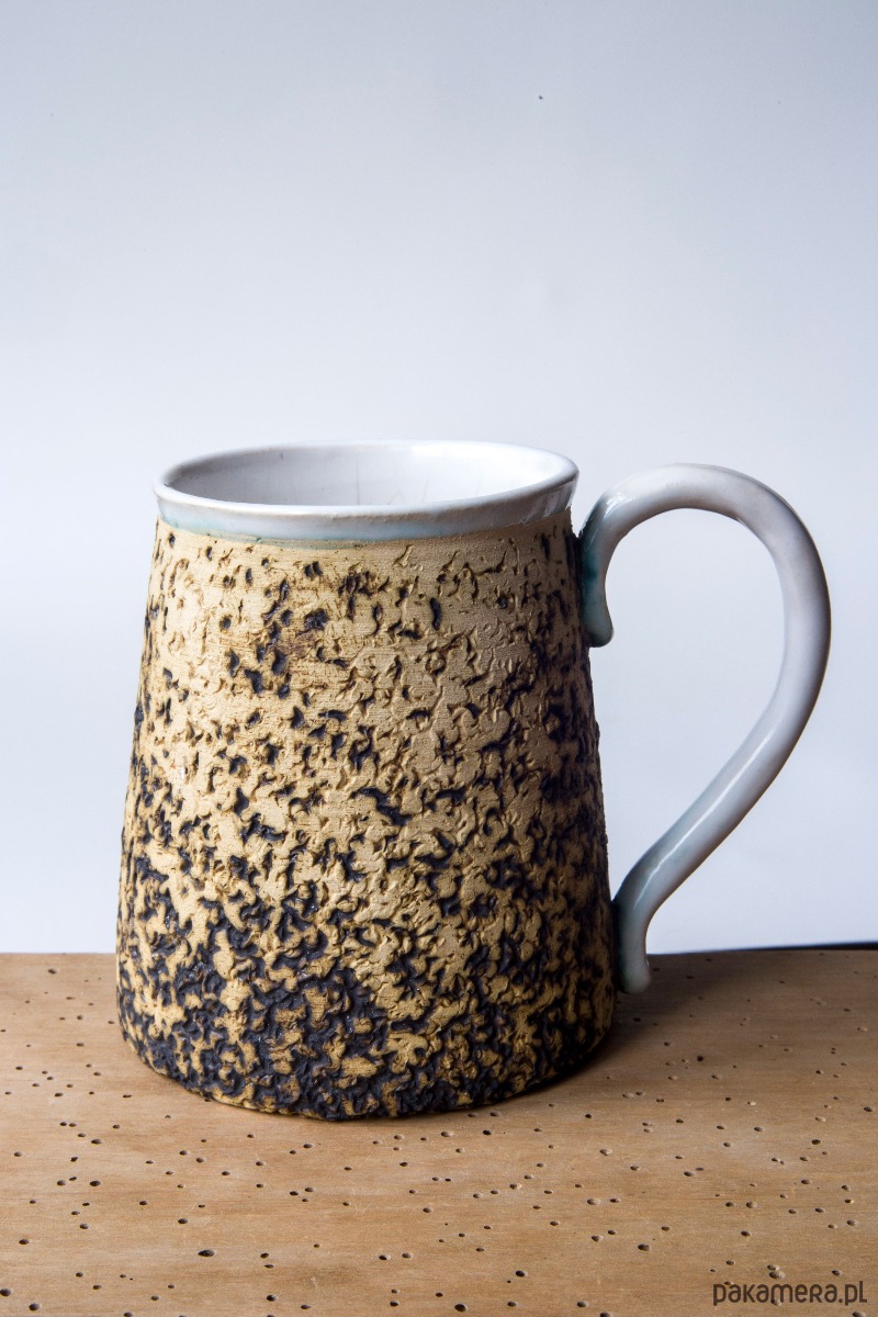 kubek toczony na kole z jasnej gliny