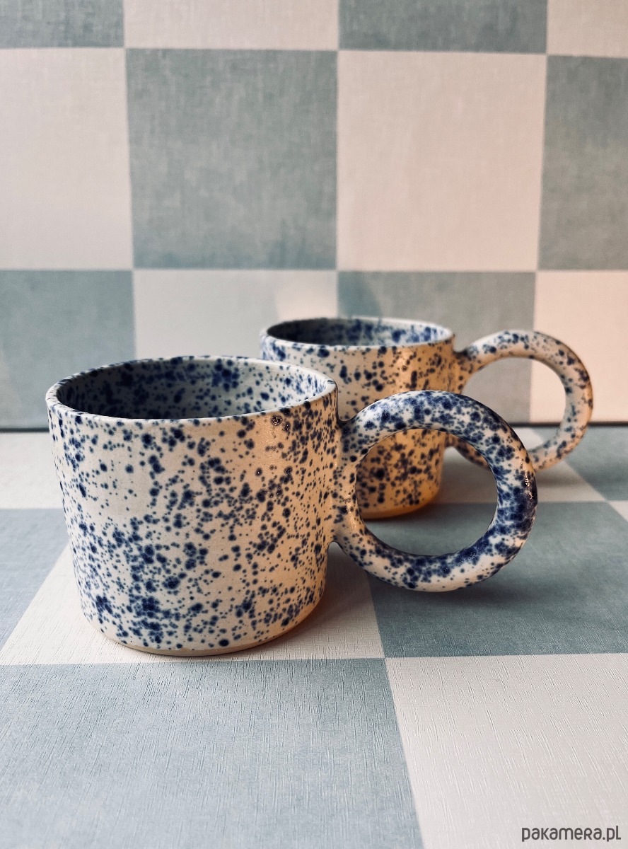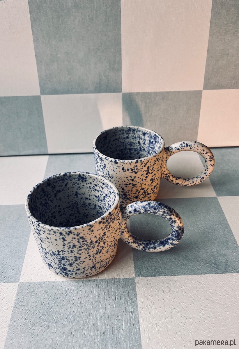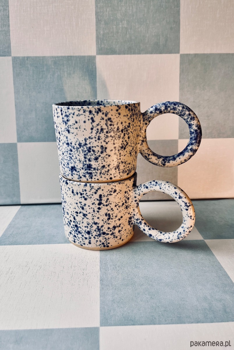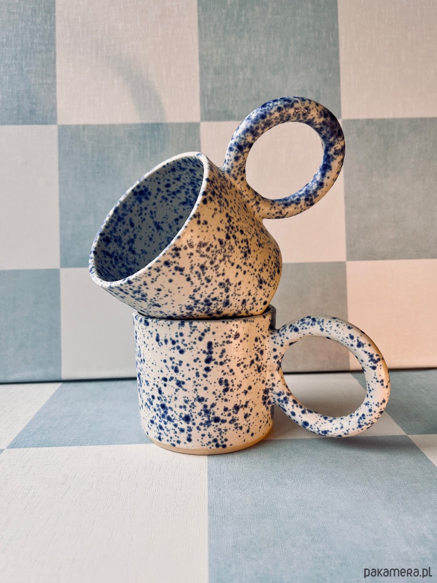 Minimalizm z nutą zabawy. Matowa biel w niebieskie piegi. Prosta forma, duże ucho i wygodny kształt sprawiają, że to idealny kubek na codzienne rytuały - poranną kawę, wieczorną herbatę, chwilę tylko dla siebie.