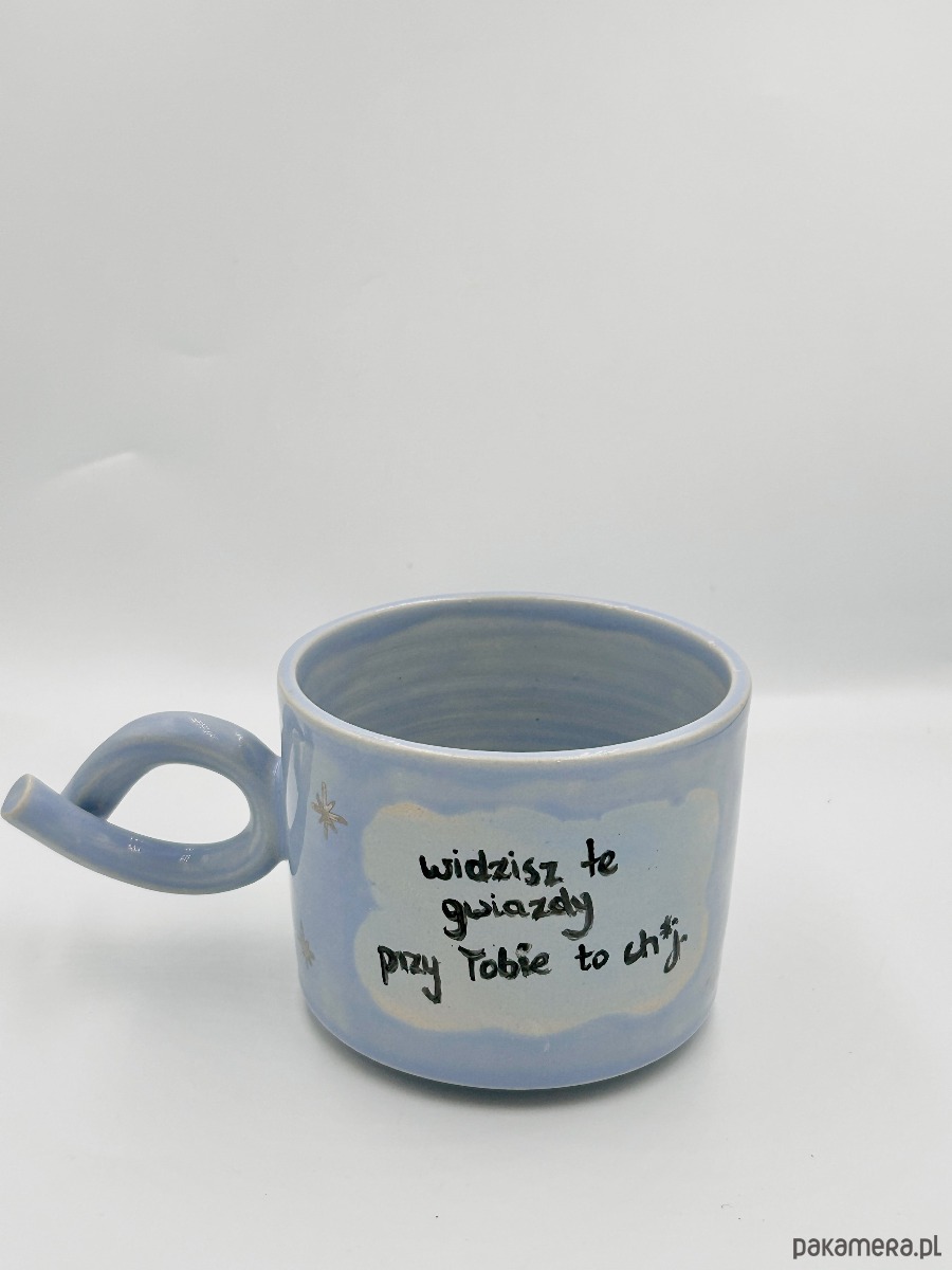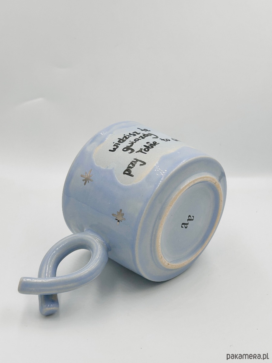 Ręcznie wykonany kubek ceramiczny, szkliwiony pędzlem , o pojemności Ok. 250ml. Kubek wykonany na kole garncarskim - mała produkcja.