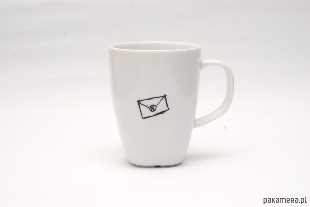 Kubki pakujemy w biały kartonik, który przewiązujemy czerwoną wstążką, tak, aby od razu były gotowe do wręczenia :)