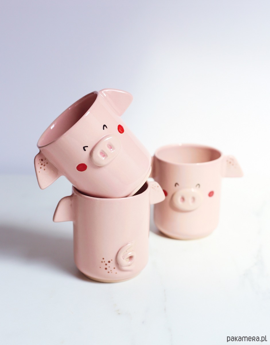 Kubek świnka, ręcznie malowany.