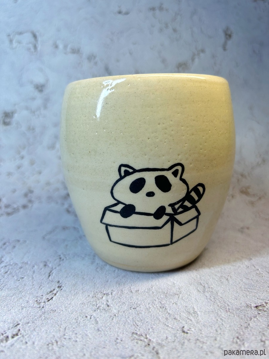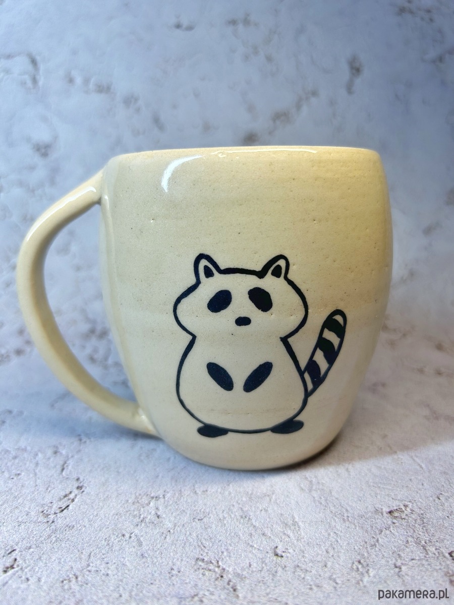 Uroczy, ręcznie wykonany kubek ceramiczny z autorską ilustracją szopa 🦝