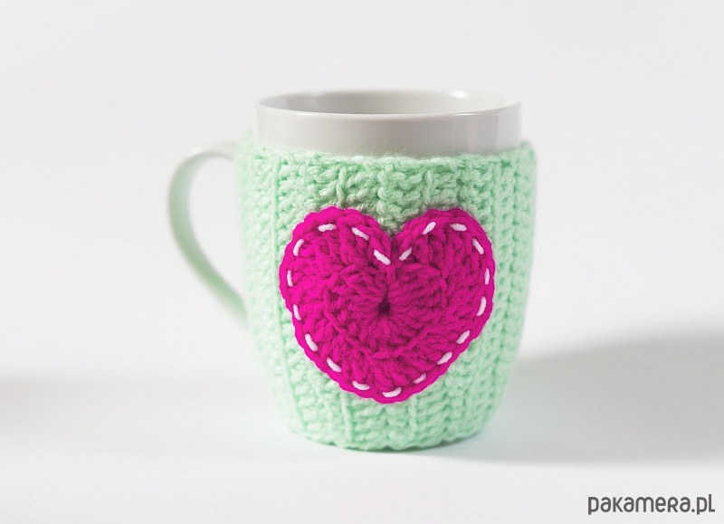 Ocieplacz na kubek, ręcznie wykonany na szydełku z włóczki.