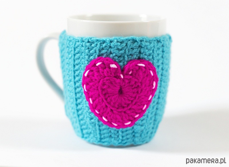 Ocieplacz na kubek, ręcznie wykonany na szydełku z włóczki.
