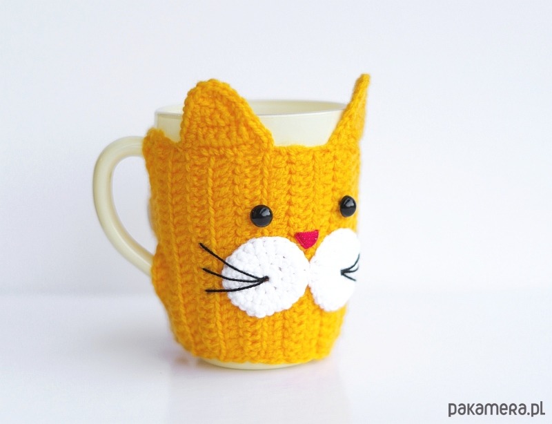 Ocieplacz na kubek, ręcznie wykonany na szydełku z włóczki.