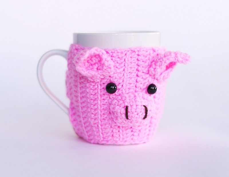 Kubeczek w ocieplaczu, ręcznie wykonany na szydełku z włóczki.