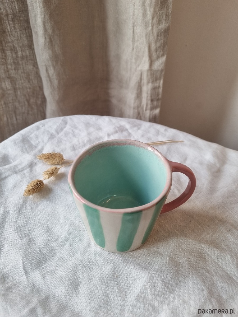 Wesoły, ręcznie malowany kubek ceramiczny idealny, by odkryć radość z każdego poranka.