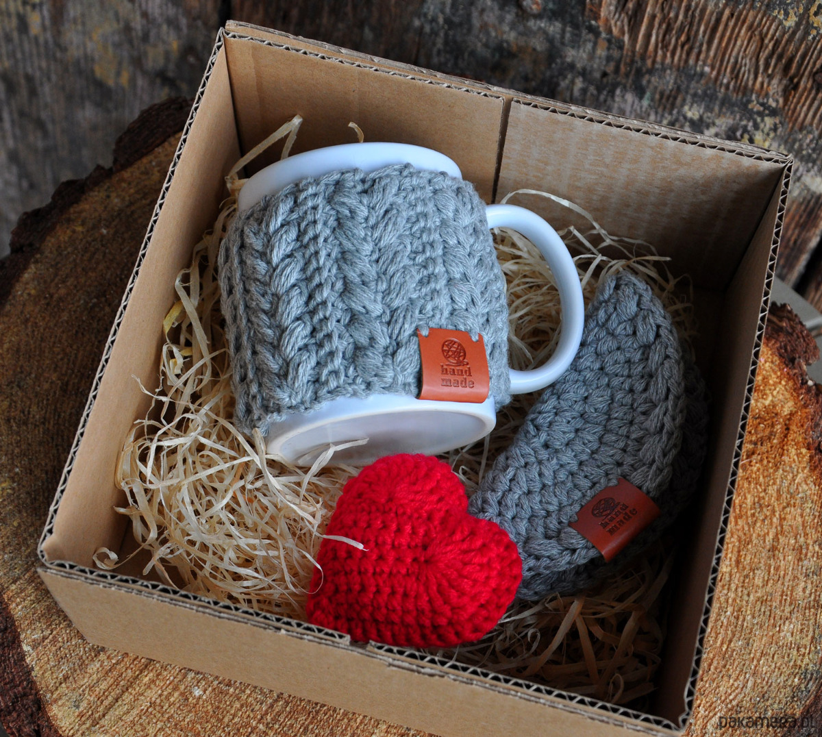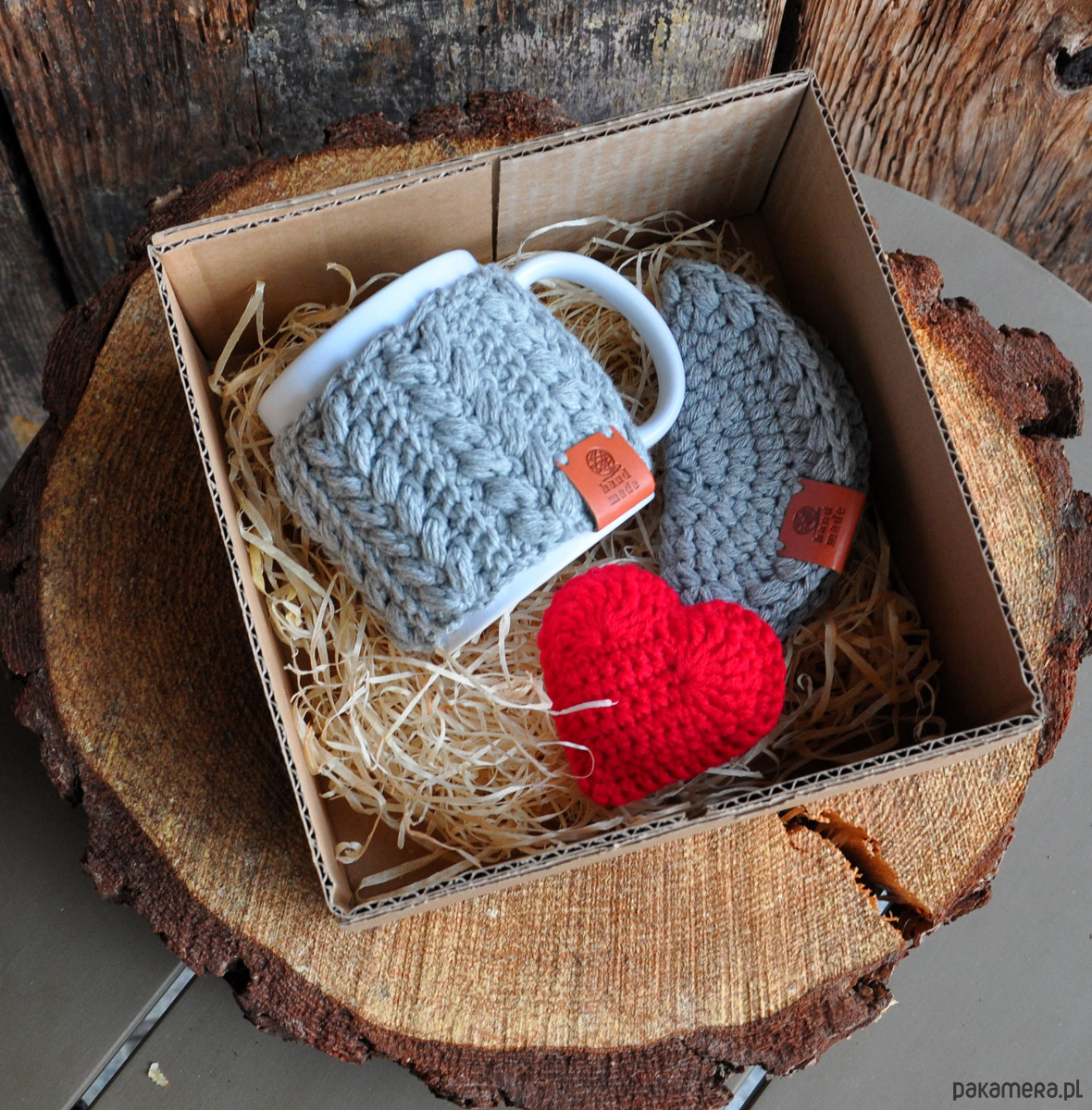 Kubek w sweterku, podkładka, serce - box prezentwowy