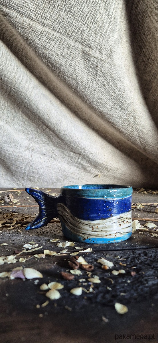 .Kubek ok. 200 ml. Dla miłośników tych pradawnych ssaków. Kubek humbak, wielorybi unikat. Jedyny w swoim rodzaju. W 100 procentach wykonany ręcznie w małej pracownii @garaż.ceramika we Wrocławiu. Wnętrze o kolorze ciepłej ocenu. Rączka ręcznie rzeźbiona, w kształcie ogona.
