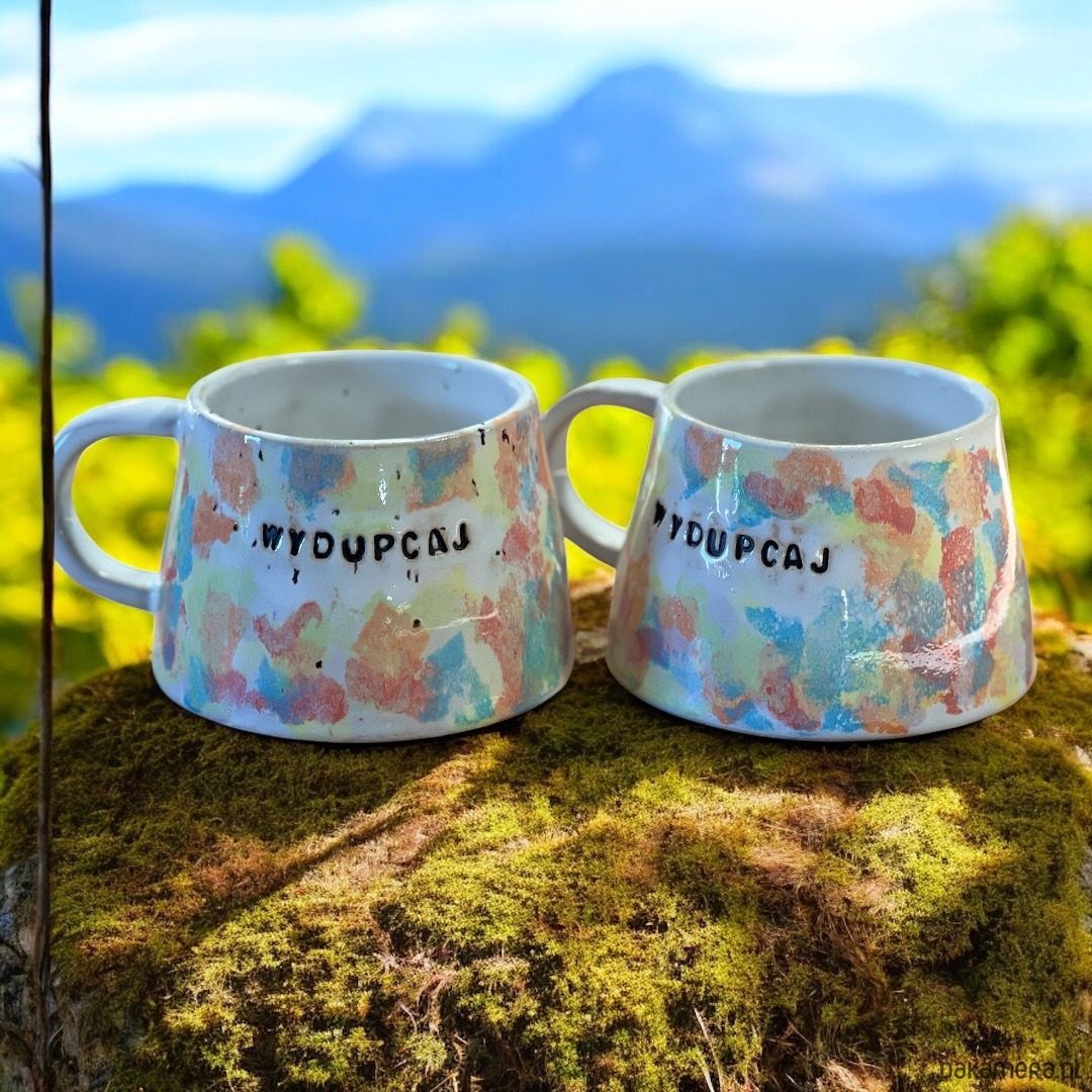 Każdy egzemplarz jest unikalny – pokryty kolorowym, pastelowym szkliwem i ozdobiony zabawnym napisem „WYDUPCAJ”, który zna każdy kto choć raz zawitał na Podhale ;)
