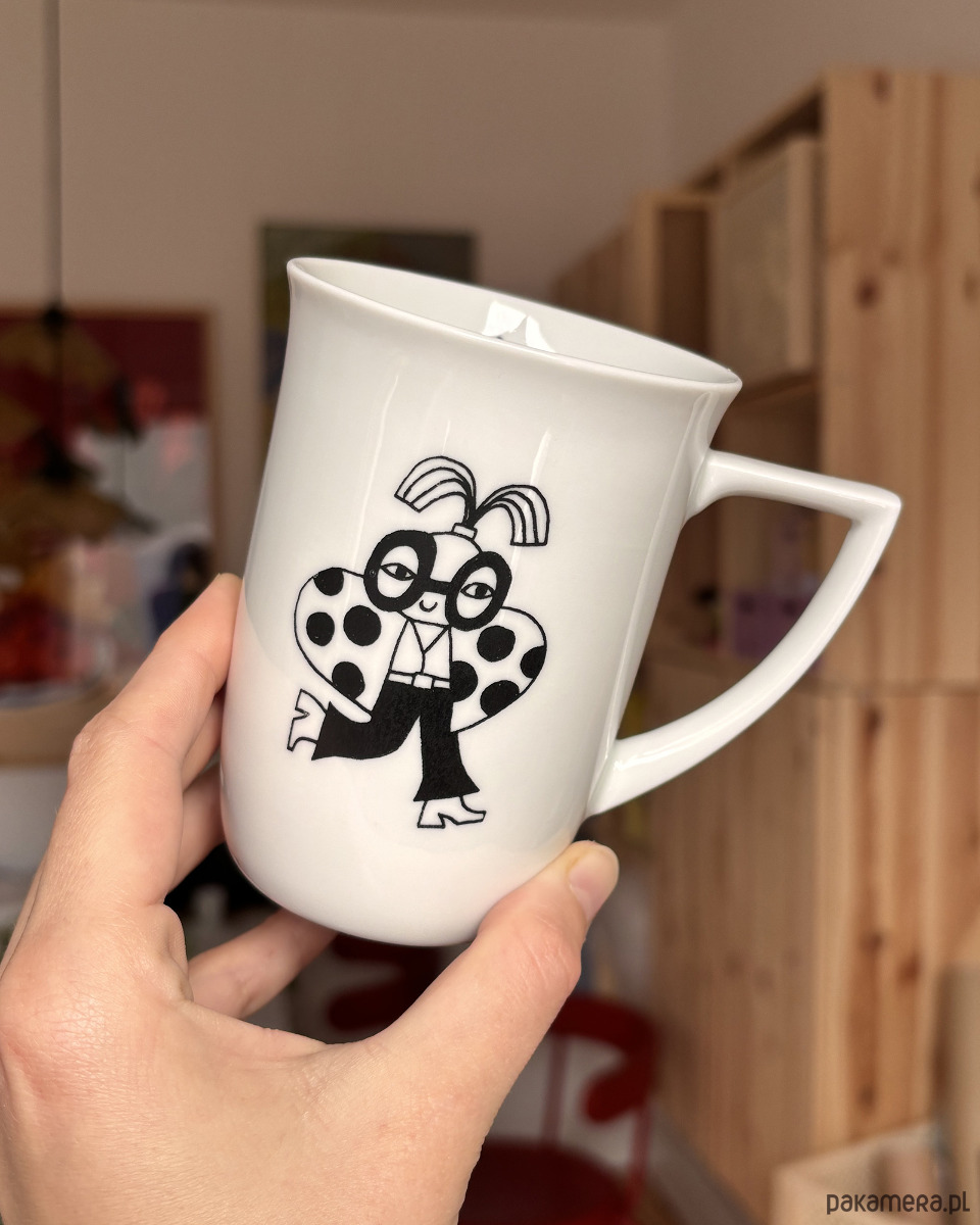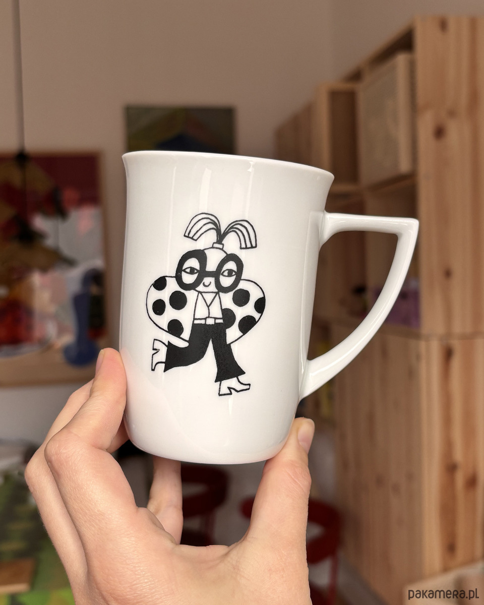 To naczynie ma już swoją historię – znalazłam je na pchlim targu, aukcjach online, a czasem nawet na śmietniku (serio!). Ozdobiłam je moimi autorskimi ilustracjami, które ręcznie przeniosłam na naczynia techniką kalkomanii ceramicznej. Na koniec całość wypaliłam w wysokiej temperaturze, dzięki czemu wzory są trwałe i bez problemu można je myć w zmywarce.