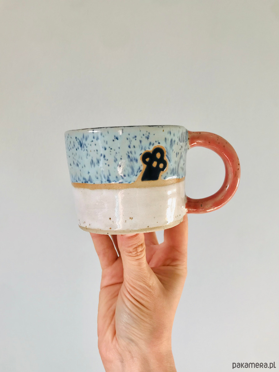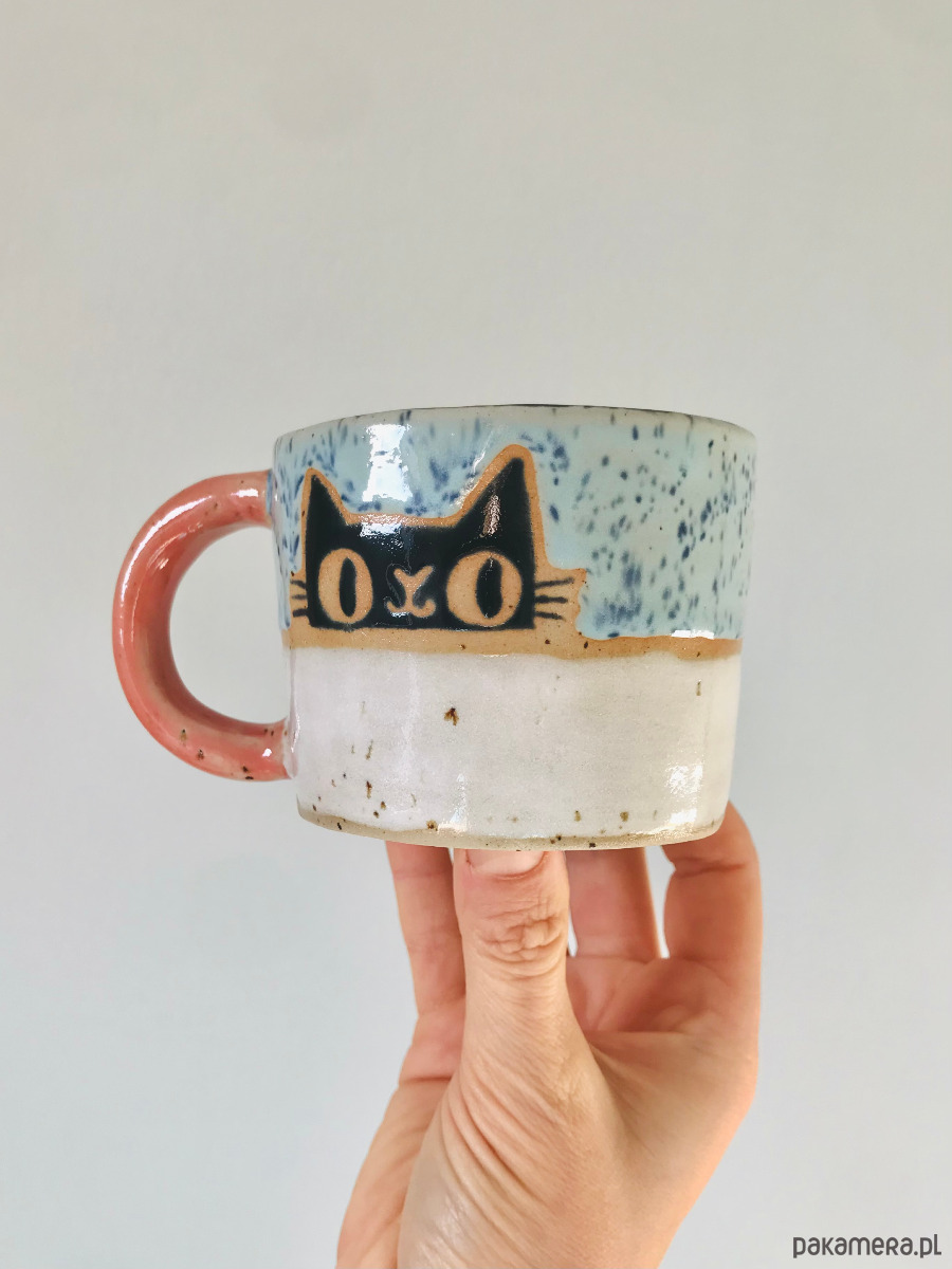 Kubek ceramiczny z kotem, wielobarwnie szkliwiony. Stworzony, by umilić Ci każdy dzień.