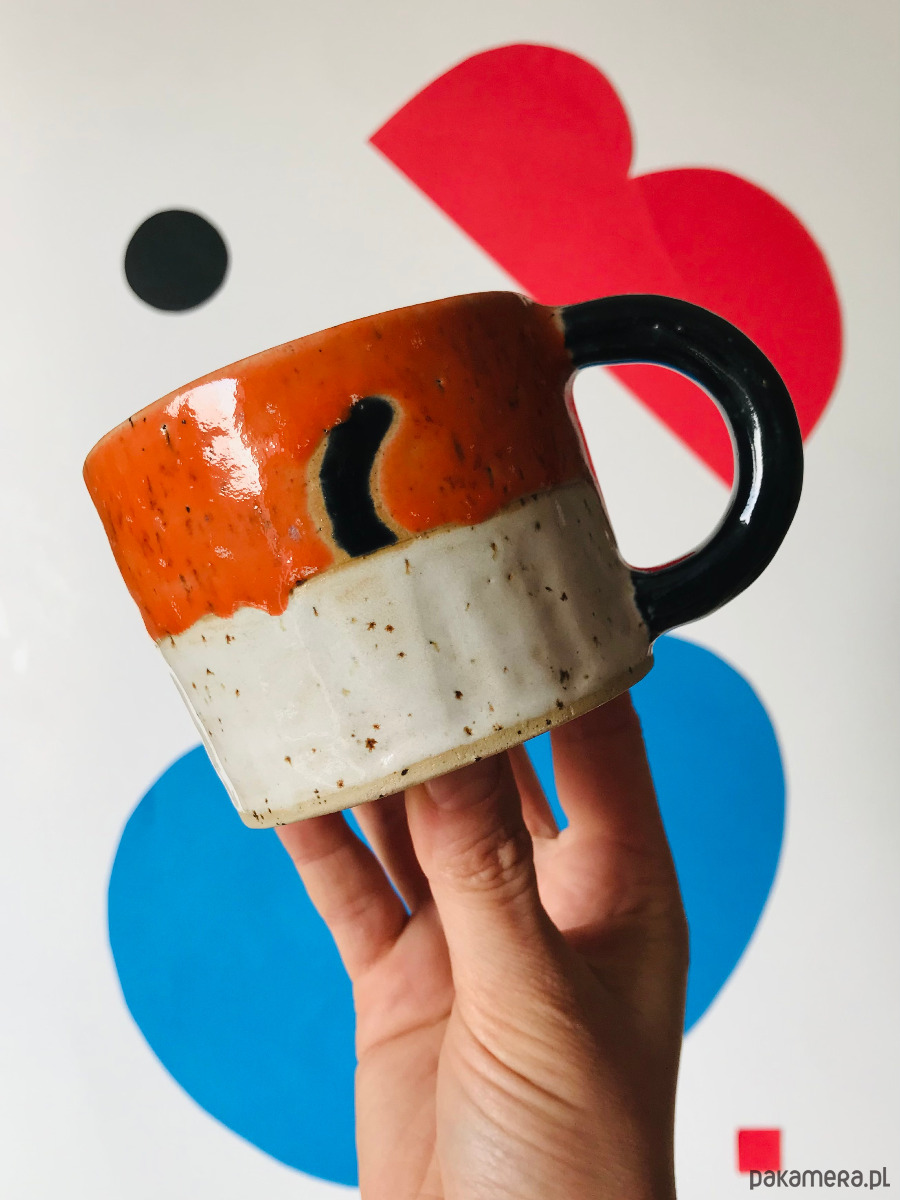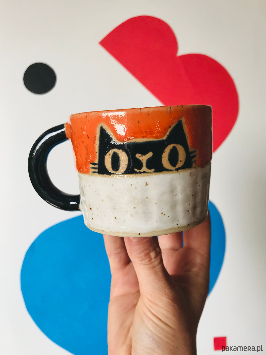 Kubek ceramiczny z kotem, wielobarwnie szkliwiony. Stworzony, by umilić Ci każdy dzień.