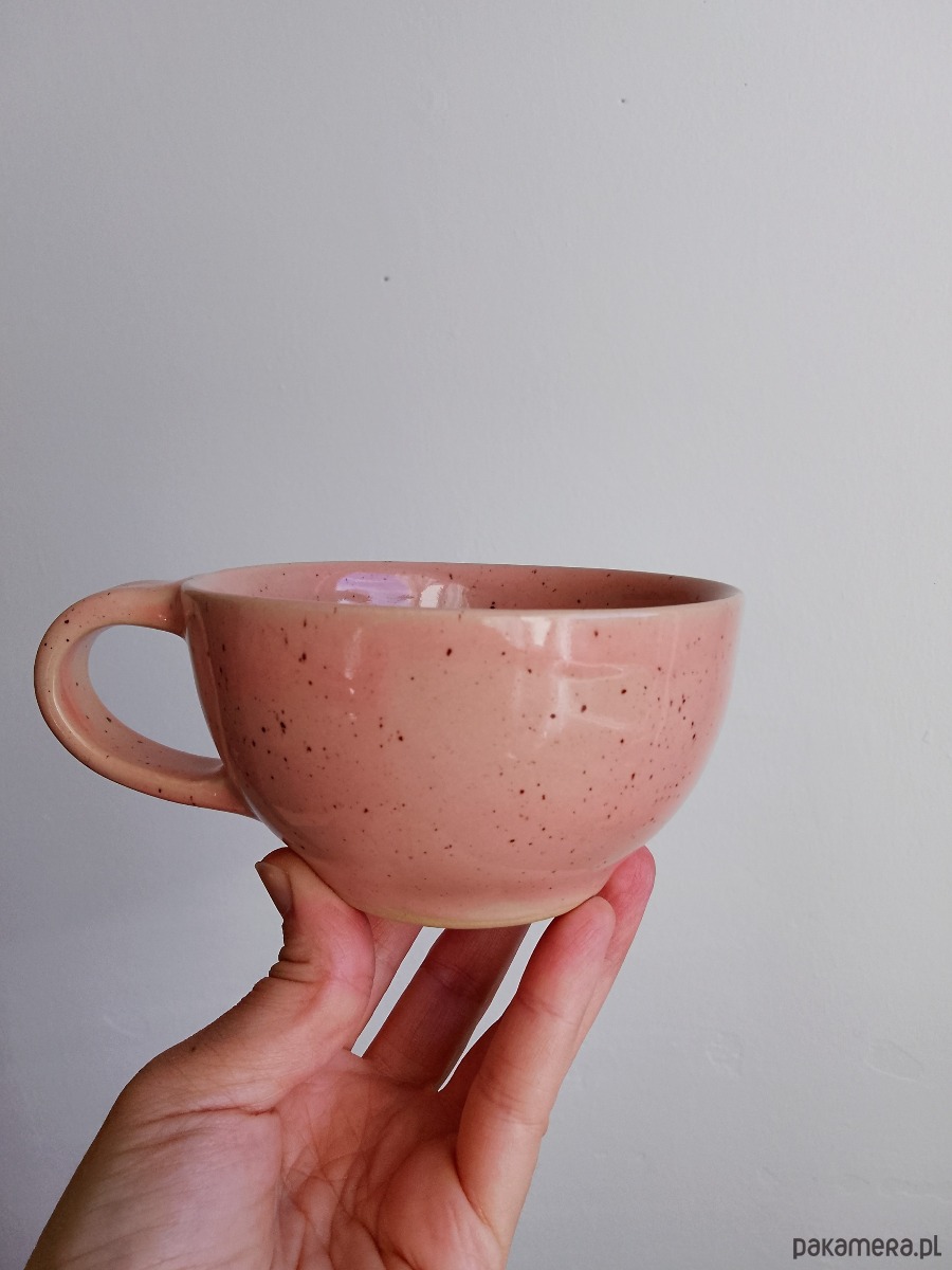 Ceramika tworzona ręcznie z beżowej gliny , z zastosowaniem szkliw do kontaktu z żywnością .