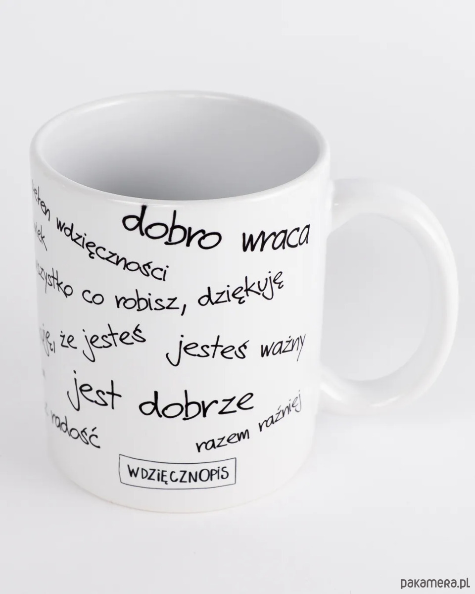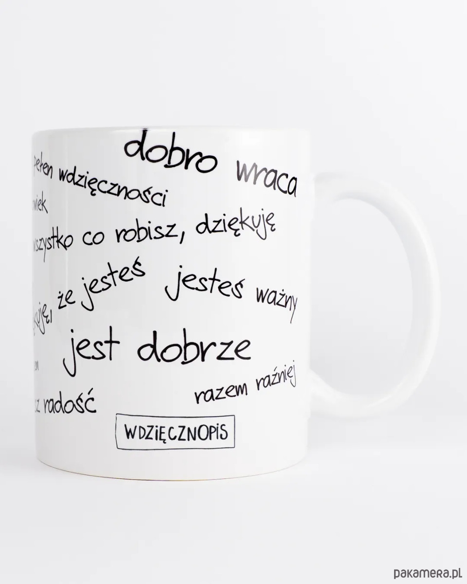 Wlej do swojego serca wdzięczność, a do tego kubka ulubiony napój. Z pięknymi rysunkami i afirmacjami, ten kubek przypomni Ci o tym, co ważne. Solidna ceramika – gotowe na każdą przygodę! Ahoj!