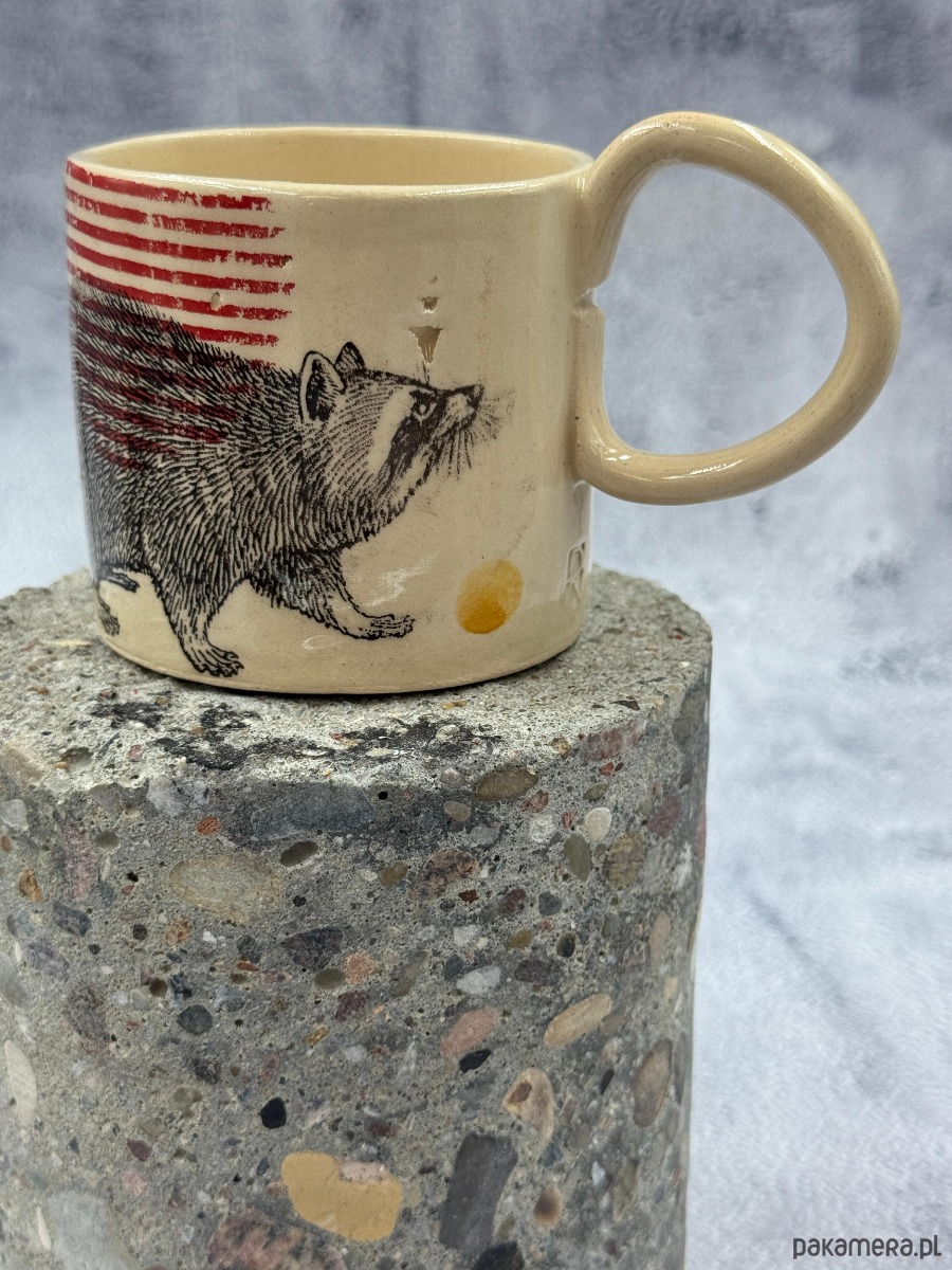 Przedstawiamy ręcznie robiony kubek z naturalnej gliny, stworzony w ograniczonej serii w pracowni Rabilla Ceramics. Delikatnie krzywy kształt nadaje mu wyjątkowy, organiczny charakter, a kremowa barwa podkreśla jego naturalny styl. Dzięki wygodnemu uchwytowi idealnie leży w dłoni, zapewniając komfort podczas codziennego użytkowania. Zdobiony metodą sitodruku z motywami zwierzęcymi, każdy kubek jest jedyny w swoim rodzaju – zarówno formy, jak i sita do druku są wykonane ręcznie w naszej pracowni. Trwały, odporny na mycie w zmywarce, łączy w sobie praktyczność i oryginalność. Wymiary: wysokość 7,5 cm, średnica 8 cm, pojemność 250 ml.