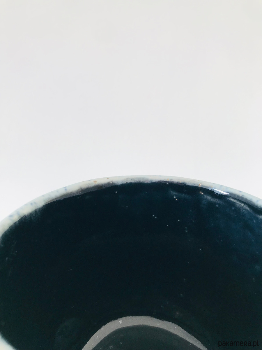 Wykonany z nakrapianej gliny, przy użyciu szkliw przeznaczonych do kontaktu z żywnością.