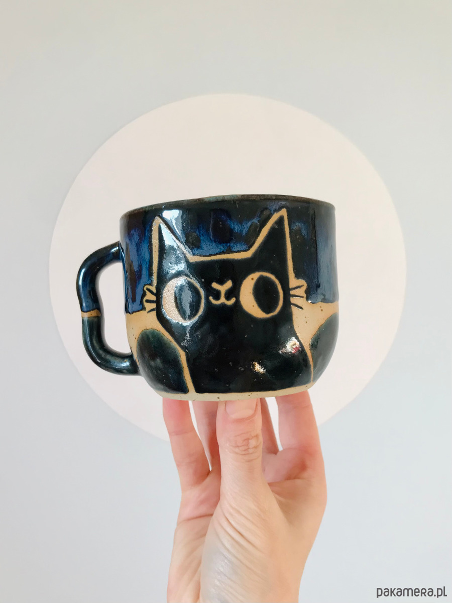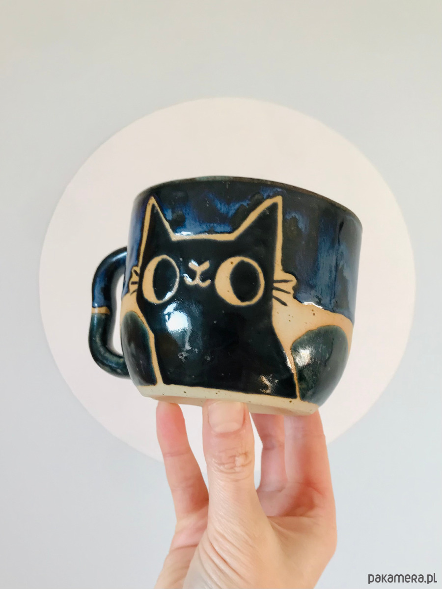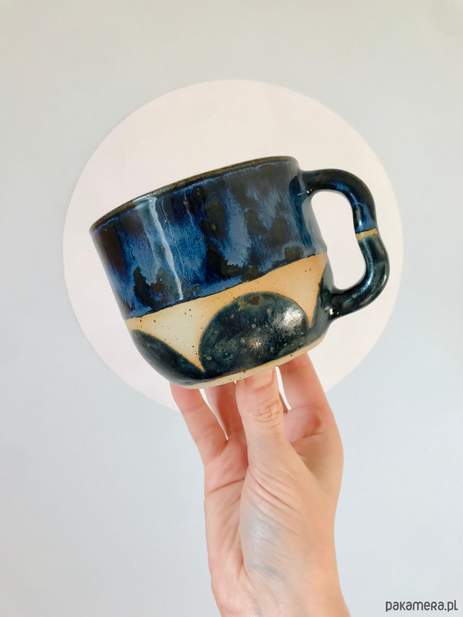 Tanie dranie to nazwa dla tych sztuk, które wyszły z pieca piękne, lecz z małą wadą. Ten ma małe ucho, ale się tego nie wstydzi :) W zależności od użytkownika, wierzch palców dłoni może z tego względu dotykać powierzchni kubka.