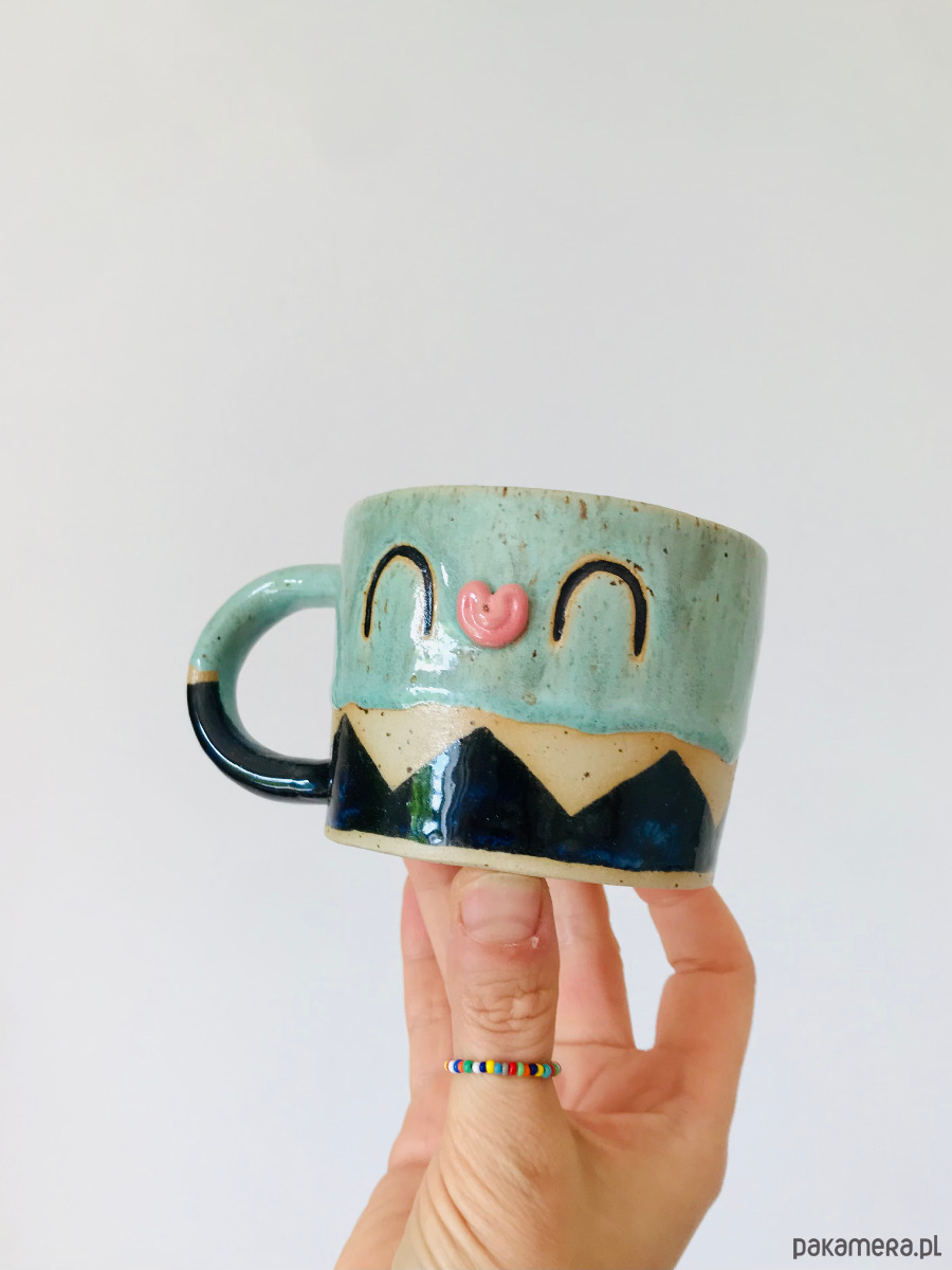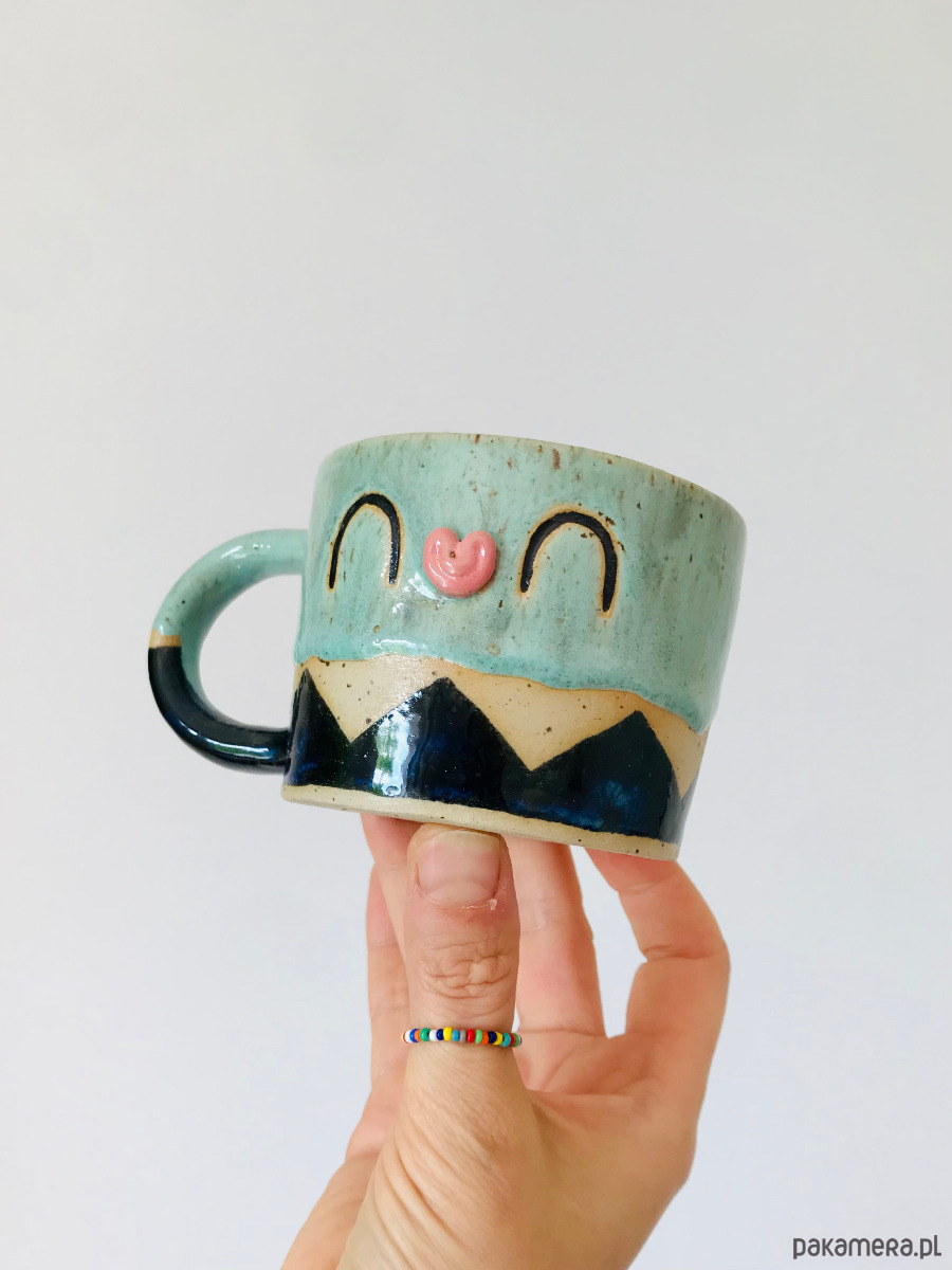 Kubek ceramiczny z uśmiechem, wielobarwnie szkliwiony. Stworzony, by umilić Ci każdy dzień.