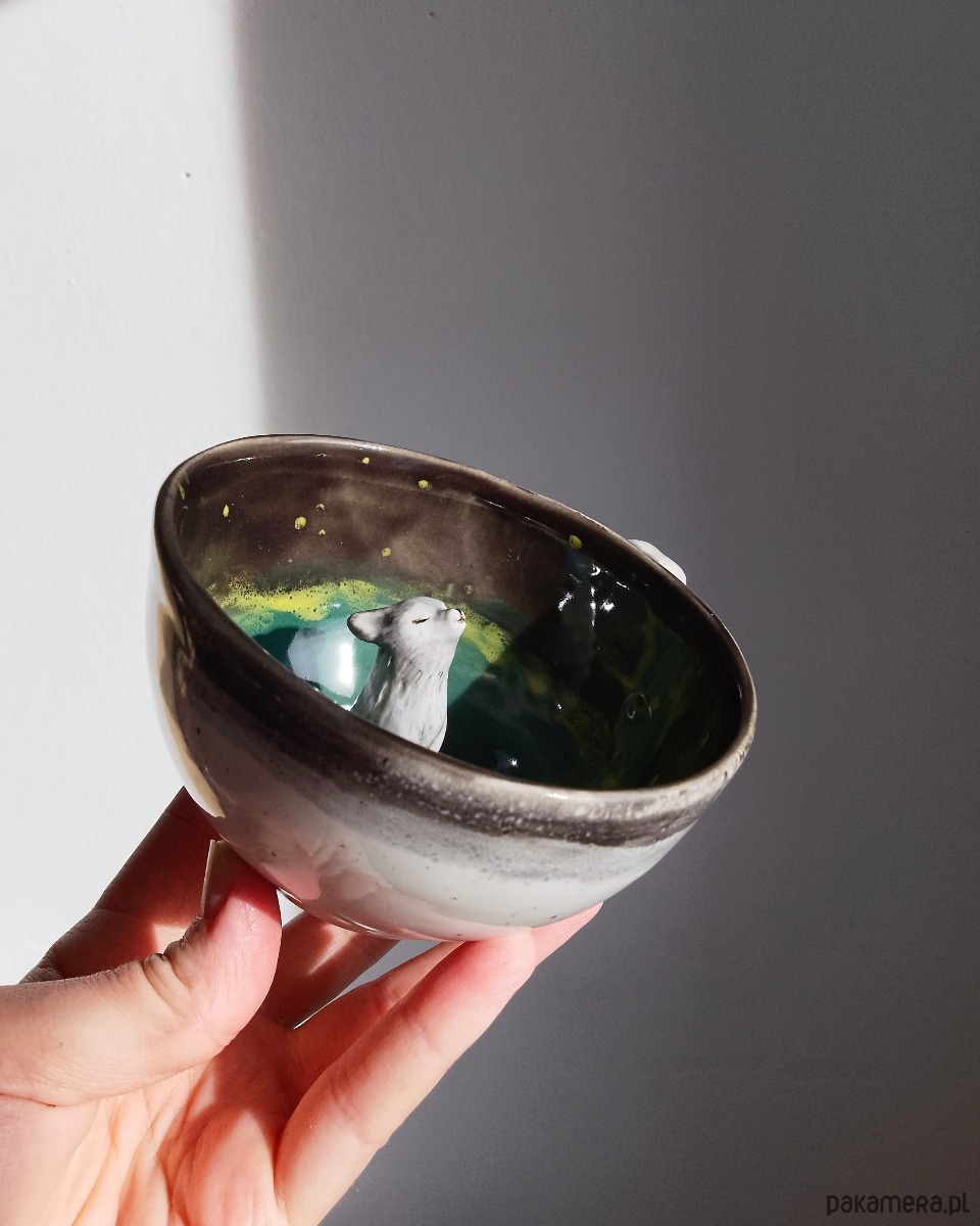 Ceramika tworzona ręcznie z beżowej gliny , z zastosowaniem szkliw przeznaczonych do kontaktu z żywnością .